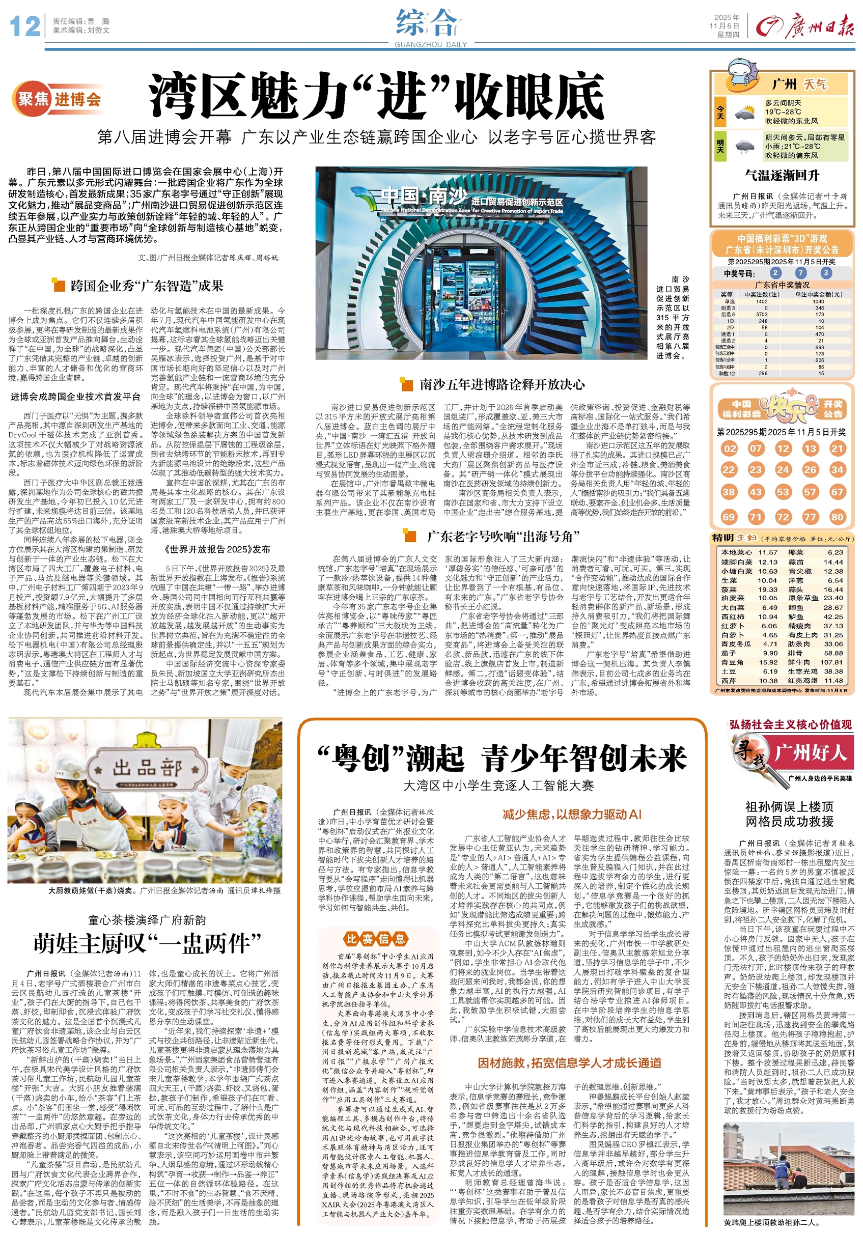 - 湾区魅力“进”收眼底 聚焦进博会 昨日,第八届中国国际进口博览会在国家会展中心(上海)开幕。广东元素以多元形式闪耀舞台:一批跨国企业将广东作为全球研发制造核心,首发最新成果;35家广东老字号通过“守正创新”展现文化