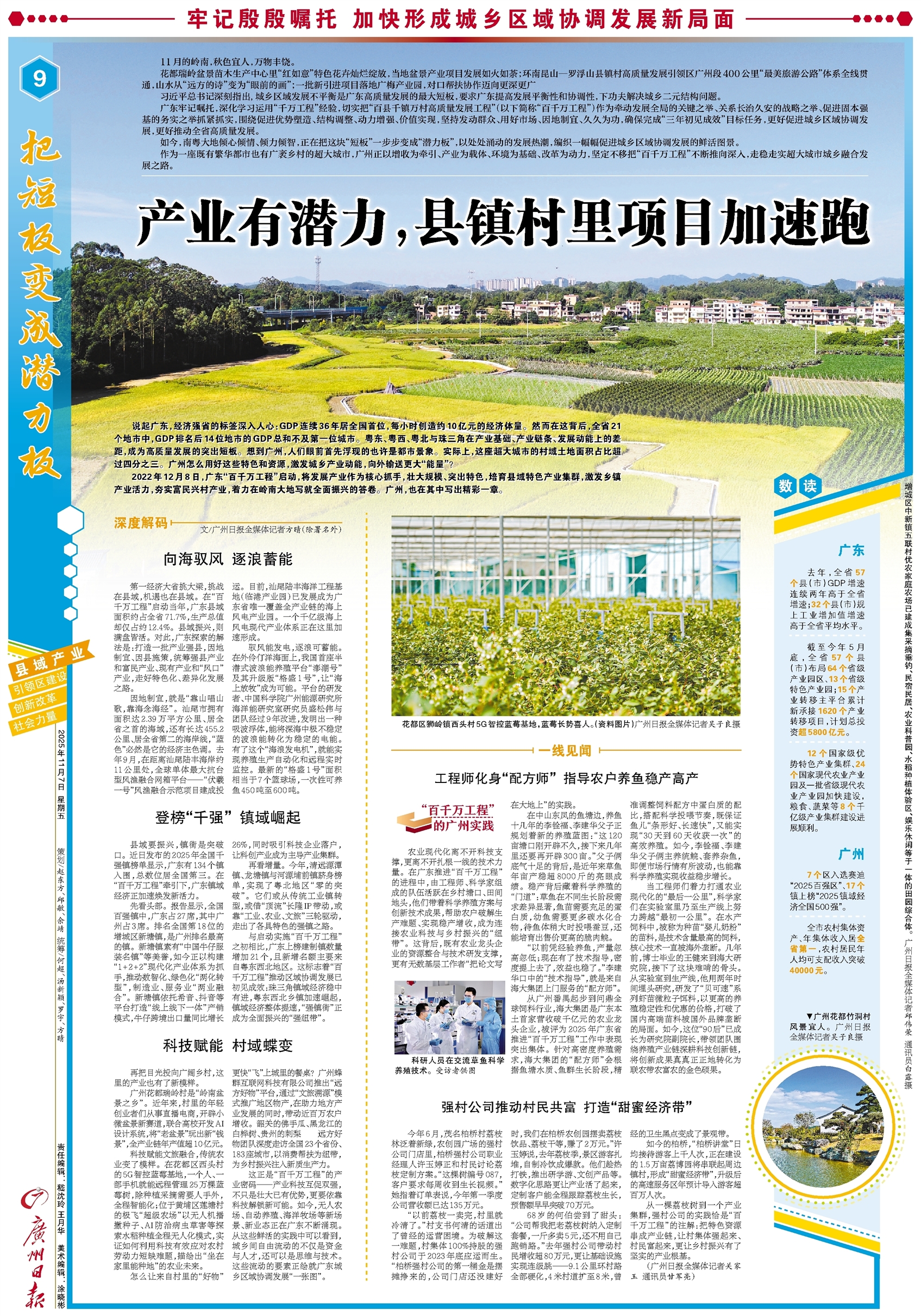 11月的岭南,秋色宜人,万物丰饶。 花都瑞岭盆景苗木生产中心里“红如意”特色花卉灿烂绽放,当地盆景产业项目发展如火如荼;环南昆山—罗浮山县镇村高质量发展引领区广州段400公里“最美旅游公路