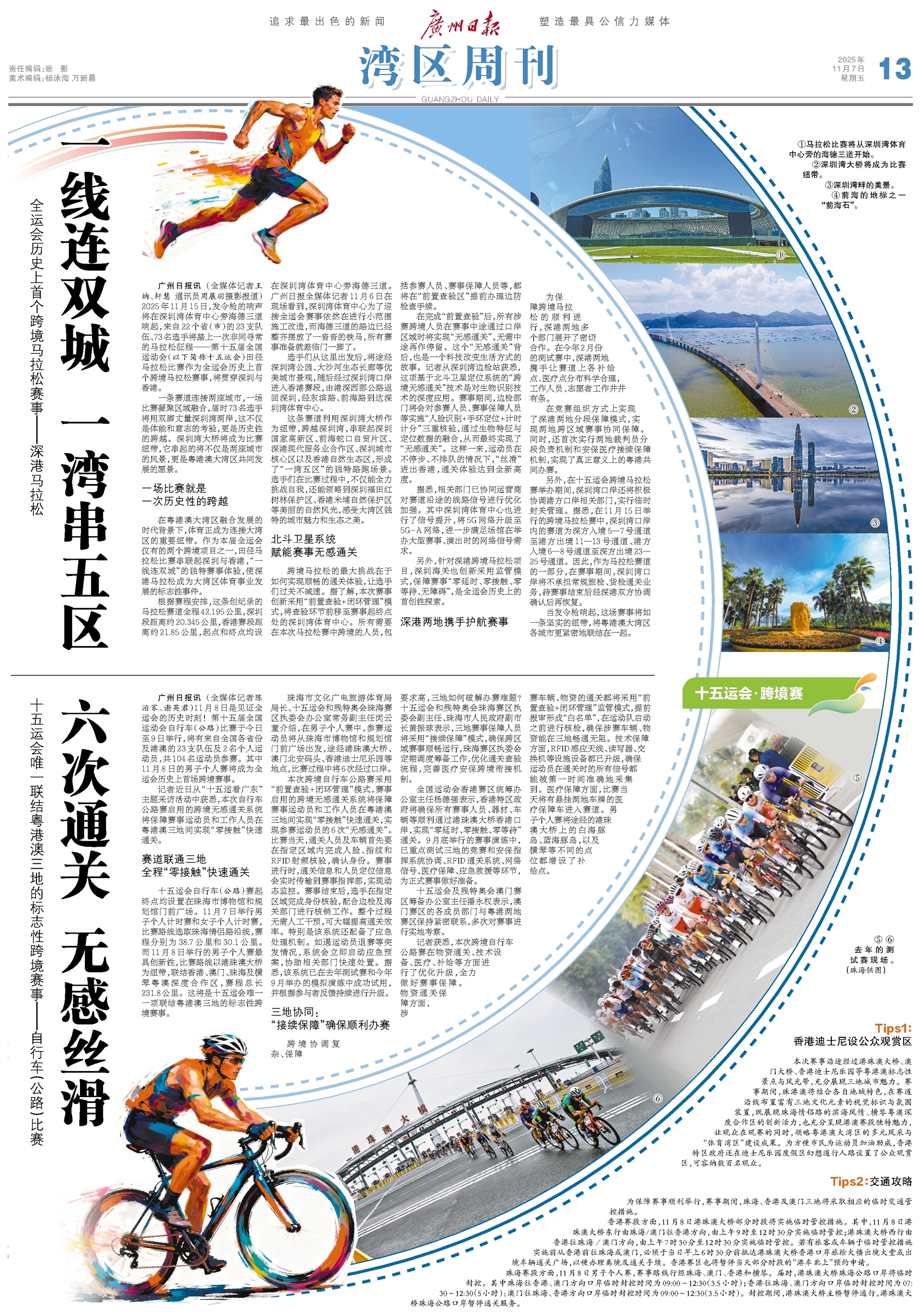 - 一线连双城 一湾串五区 十五运会·跨境赛 广州日报讯 (全媒体记者王纳、轩慧 通讯员周展羽摄影报道)2025年11月15日,发令枪的响声将在深圳湾体育中心旁海德三道响起,来自22个省(市)的23支队伍、73名选手将踏