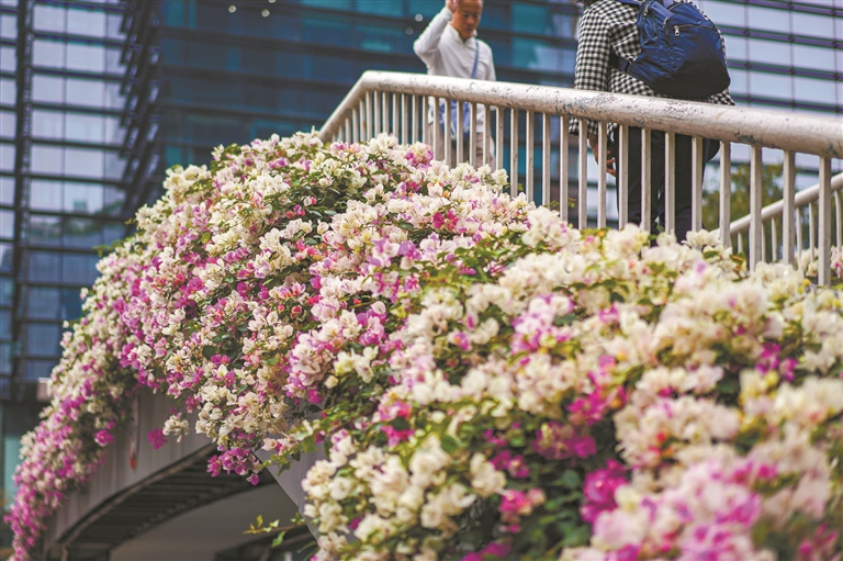 岭南花影千般秀,粤地芳姿万种娇。广州素有“千年花城”美誉,园林绿化品质提升“点、线、面”结合,在15个重要交通出入口、210条赛事通道、7个重要片区系统推进全域美化增色。去年10月起实施的簕杜鹃专项行动,优选出20多个优良品种,建设17公里簕杜鹃种植带和21处簕杜鹃花景点,构建了420多座桥梁立体花廊。通过精准调控花期,11月将全城绽放,为全运会营造“千廊簕杜鹃,万境花满城”的城市意象。