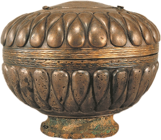 1983年,南越文王赵眜的陵墓在广州象岗山被发现。墓中出土的银盒,全身装饰着捶打而成的蒜形交错凸纹,盒盖和盒身复合处镌刻着穗状鎏金带纹。这样的风格并不见于汉代本土器皿,却能在波斯阿契美尼德王朝的金银器中找到相似的标本。银盒传入中国后,工匠们在盖面上焊上3个小凸榫,套上中国风的羊钮饰,刻上隶书的王宫藏品编码,再在底部加上一道圈足,一件典型的“洋为中用”器物宣告完成。而墓中的非洲象牙、阿拉伯乳香、燃烧东南亚树脂香料的香炉以及带有两河流域风格的焊珠金花泡等,显然也都是舶来品。