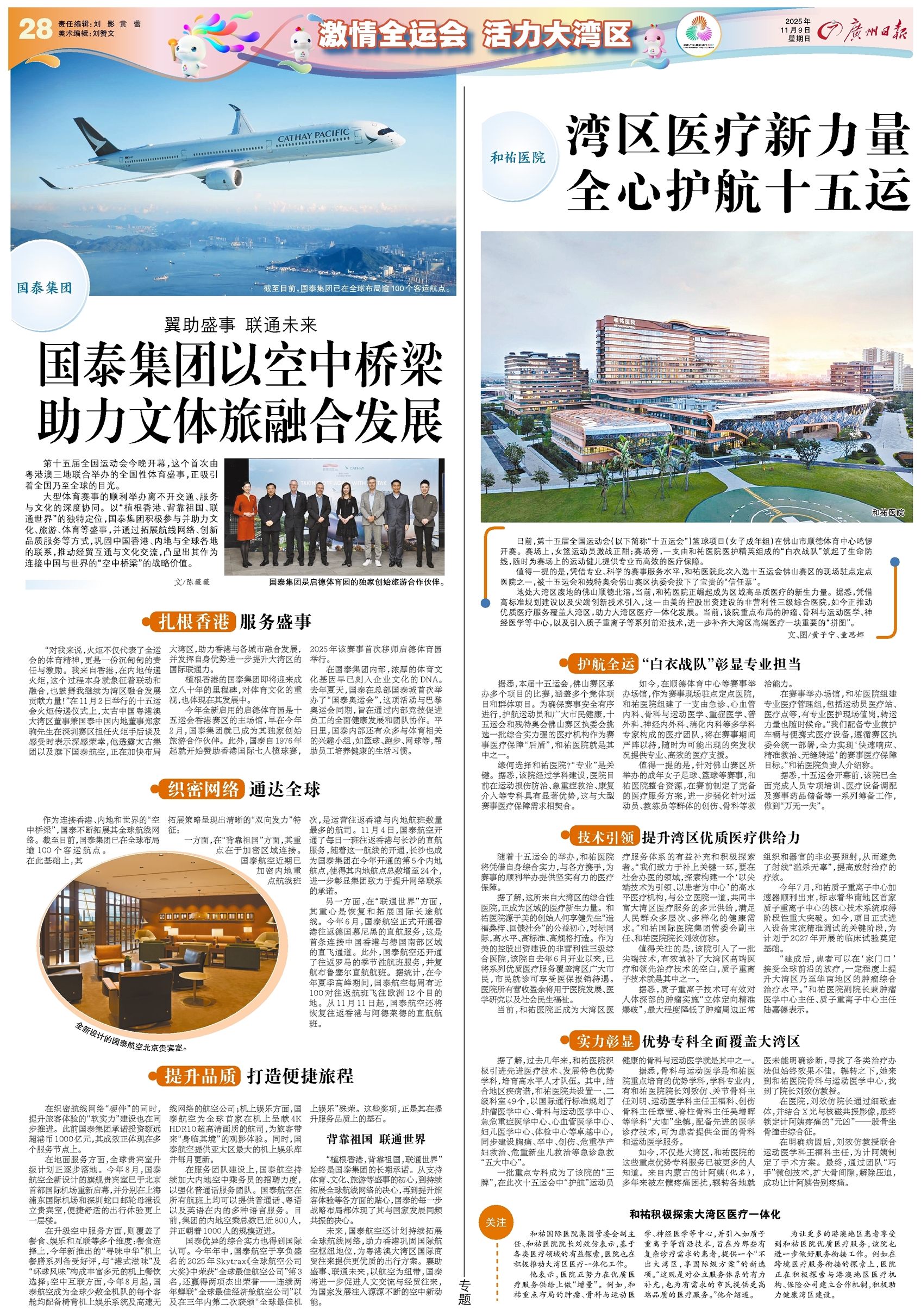 - 国泰集团以空中桥梁 助力文体旅融合发展 第十五届全国运动会今晚开幕,这个首次由粤港澳三地联合举办的全国性体育盛事,正吸引着全国乃至全球的目光。 大型体育赛事的顺利举办离不开交通、服务与文化的深度协同。以“植根香港、背靠祖国、联通