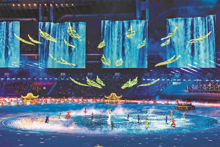 从粤语歌曲到粤剧、从南狮到龙舟、从岭南建筑到文化地标……开幕式文体展演的岭南文化和非遗元素让观众感受到浓厚的岭南韵味,第二篇章“同心同缘”更突出了对乡愁、乡音、乡情、乡韵的表达。“在我们共同生活的这片水土,是岭南文化滋养了我们。”十五运会开幕式总撰稿乔卫说。