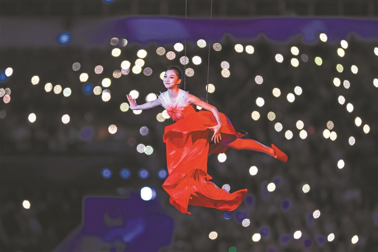 “当身着‘木棉红’的引导员,穿着类似木棉花瓣的不规则短裙,出现在万人瞩目的体育盛事上,你会发现它极具岭南符号,她们身上的服饰还用了粤绣以及粤剧的云肩,既是带有岭南符号的传统元素,又极具活力和当代感。”阳东霖说。