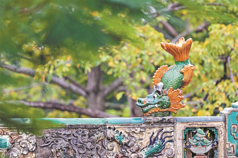 广州日报讯 (全媒体记者廖靖文 通讯员李文博摄影报道)鳌鱼是中国神话中龙头鱼身的瑞兽,源自“鲤跃龙门”传说,寓意“独占鳌头”,是寄托金榜题名与拼搏精神的经典符号。此外,因古建筑多为木结构,惧怕火灾,而鳌鱼身为水神之龙与鱼身的结合体,相传能吞食火舌,故常被装饰于屋脊,兼具守护平安的实用功能。