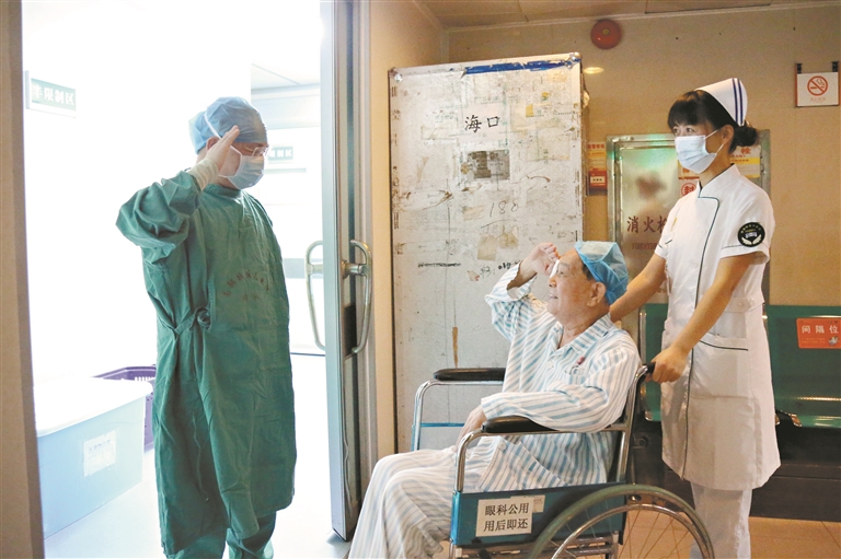 何老的健康牵动着很多人的心,南部战区总医院的医护团队全力保驾护航,手术非常成功,离开手术室前,何老特意为眼科手术团队敬了一个庄严的军礼。当术后揭开纱布的那一刻,何老激动地说道:“太神奇了,重见光明的感觉真好!”在眼科医护人员的精心照料下,术后一周,何老的视力就达到了1.0,治疗效果立竿见影。“在发射场上,何老点亮了祖国的航天之光;而我们,愿努力为他点亮生命之光。”参与诊治的医护团队表示,何老的人生故事、奋斗历程、为祖国的无私奉献精神,深深地打动了他们。