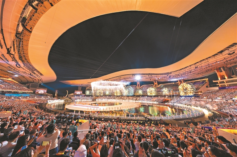 据悉,开幕式当天,不少观众都早早来到广东奥体中心,大家井然有序排队接受安检,有序入场、对号入座,静候开幕式启幕。演出期间,看台上秩序井然、气氛热烈,掌声、欢呼声不绝于耳,观众手机化作“繁星”闪耀全场。开幕式结束后,用时不到1个小时,数以万计的观众便安全有序离场,顺利踏上回家之路。