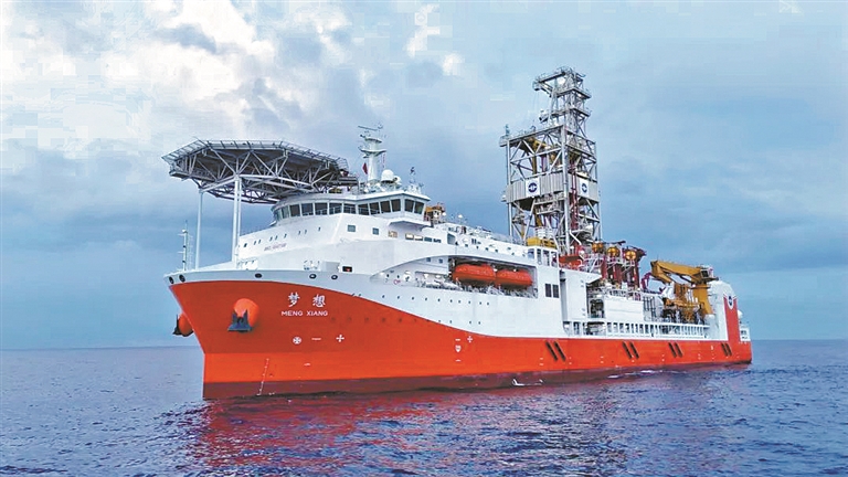 作为我国首艘自主设计建造的大洋钻探船,“梦想”号船长179.8米,宽32.8米,排水量42600吨,续航力15000海里,自持力120天,最大载员180人,可在6级海况下正常作业、16级超强台风下安全生存。船上建有基础地质、古地磁、无机地化、有机地化等九大功能实验室,总面积超3000平方米,配置全球首套船载岩心自动传输存储系统,可满足海洋领域全学科研究需求,堪称海上移动“国家实验室”。