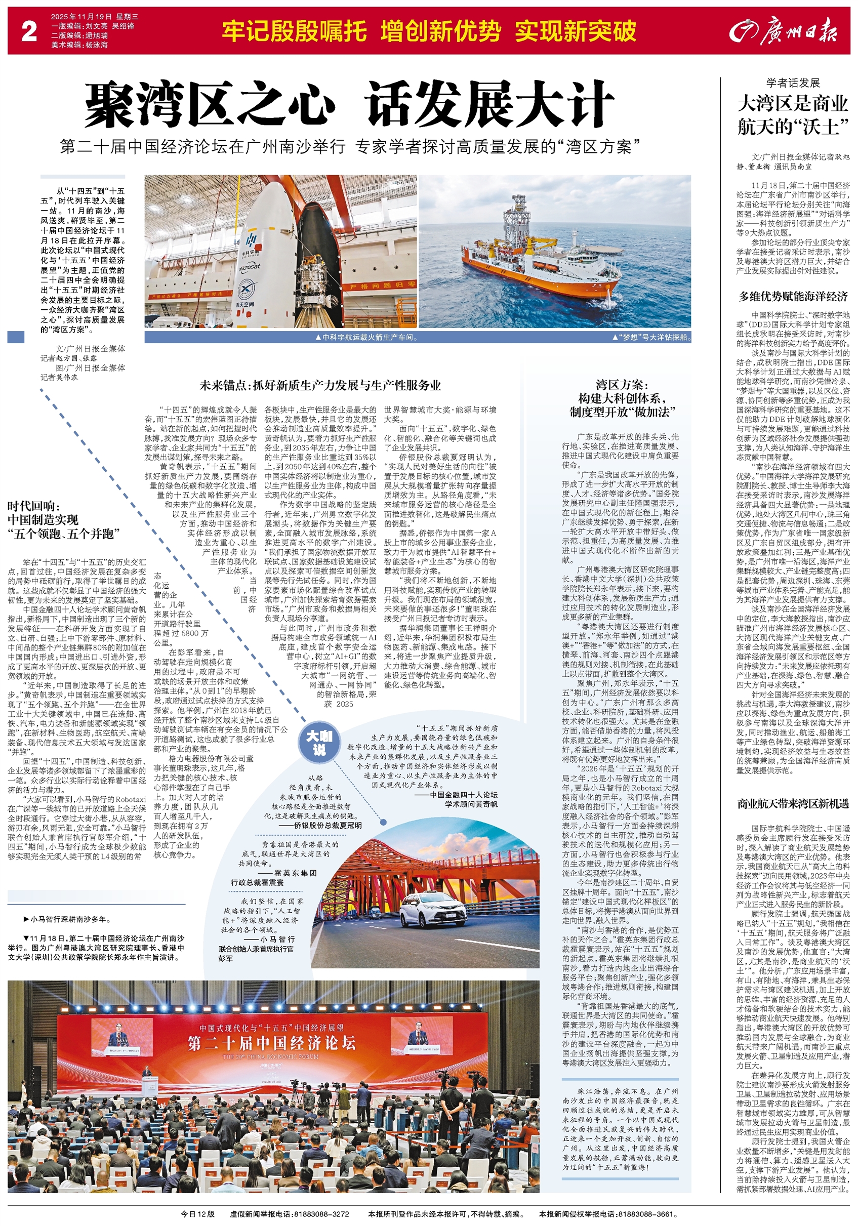 珠江浩荡,奔流不息。在广州南沙发出的中国经济最强音,既是回顾过往成就的总结,更是开启未来征程的号角。一个以中国式现代化全面推进民族复兴的伟大时代,正迎来一个更加开放、创新、自信的广州。从这里出发,中国经济高质量发展的航船,正蓄满动能,驶向更为辽阔的“十五五”新蓝海!