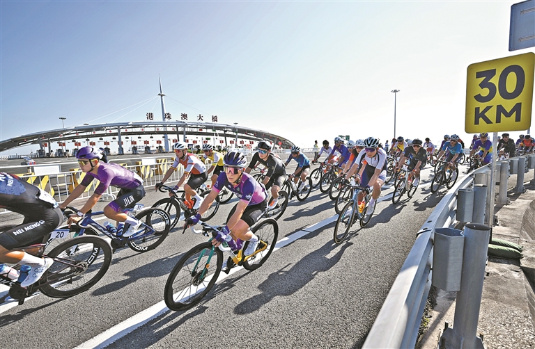 11月8日,全运会历史上首个跨境比赛——十五运会公路自行车男子个人赛举行,从珠海出发,穿越澳门、香港,驰骋港珠澳大桥,通过人脸识别、前置查验等技术手段,运动员在全程231.8公里的赛道上6次经过口岸,享受丝滑通关体验。最后,山东队刘志城夺得这项极具历史意义的冠军。