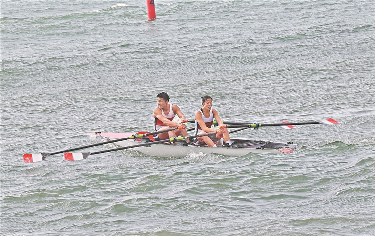 跟随奥运会的脚步,海岸赛艇在十五运会首次成为全运会正式比赛项目。11月16日,海岸赛艇混合双人双桨决赛,广东队王云飞/张桂萍夺冠,赢得本届全运会的海岸赛艇首金,全运会历史上首枚海岸赛艇金牌花落广东。
