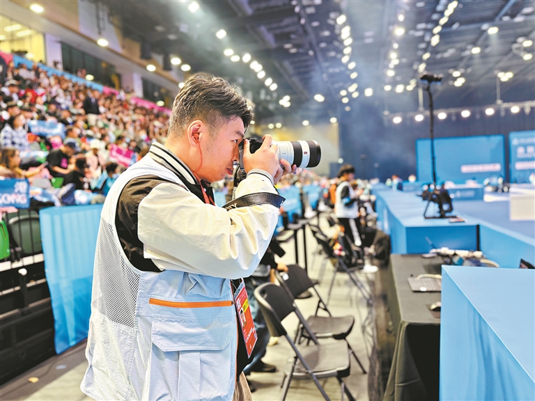 本次全运会是我们两位年轻记者首次近距离接触大型体育赛事。起初,我们既兴奋,又有些手忙脚乱。但在一次次并肩作战中,我们逐渐找到了“双打”般的默契,配合也愈发流畅——一人留守场内记录决胜瞬间,另一人则趁局休间隙提前赶赴混采区,为赛后采访抢占先机。