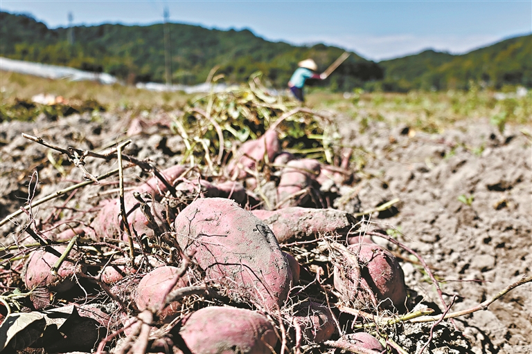 “太好吃了!”市民现场品尝完刚出炉的高山番薯后不由得点赞。活动现场,高山番薯、五指毛桃、七彩花生等特色农产品琳琅满目。醒狮《金薯呈祥·醒狮耀良口》腾跃翻飞、瑞气盈门,舞蹈《从化姑娘》用优美的舞姿展现了从化女儿的风采……为市民群众带来一场集民俗表演、文化展示、产业推介、助农销售于一体的乡村文化盛宴。当日活动现场还举行了战略合作签约仪式,通过深化企地合作、产销对接,进一步畅通农产品销售渠道。本届番薯节由达溪村、合群村、和丰村、团丰村四村携手主办。其中高山番薯作为良口镇达溪村的“一村一品”农作物,年种植面积约600亩,年产量约300吨。