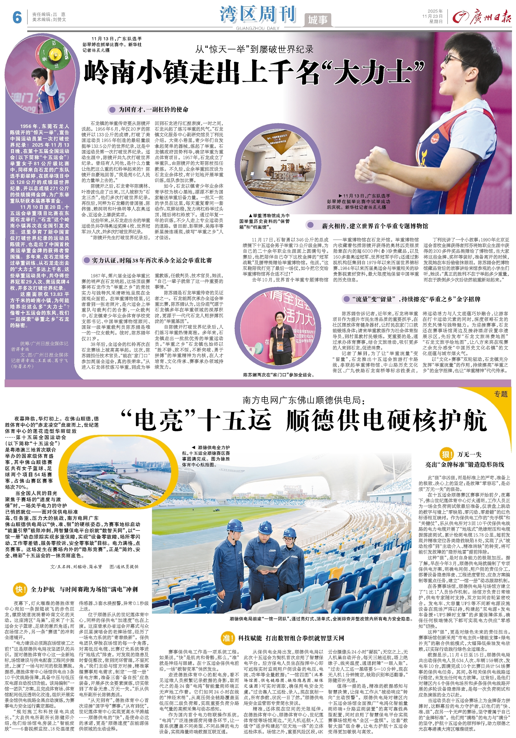 1956年,东莞石龙人陈镜开的“惊天一举”,宣告中国运动员第一次打破世界纪录!2025年11月13日晚,在第十五届全国运动会(以下简称“十五运会”)举重女子81公斤级比赛中,同样来自石龙的广东队选手彭翠婷,在抓举项目中以128公斤的成绩超世界纪录,并以总成绩271公斤的佳绩摘得金牌,为广东举重队斩获本届赛事首金。