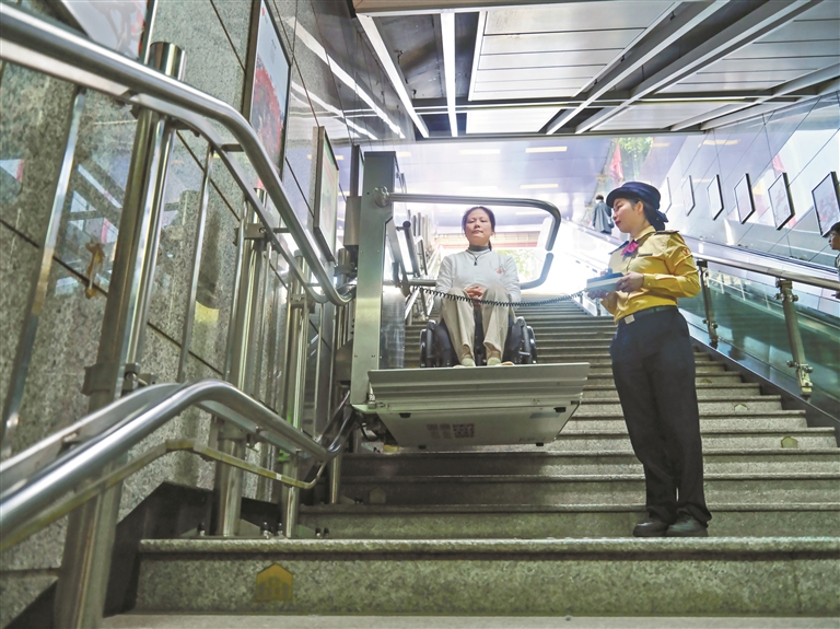 记者了解到,康女士准备前往番禺开会,值班站长陈琳将乘客平稳送上列车后,再次确认列车班次时间和车门编号,告知目的地车站的同事,让对方提前准备接应。“我们坐轮椅,不方便走楼梯,很感谢地铁站的工作人员,让我们的出行更便捷了。”康女士说。