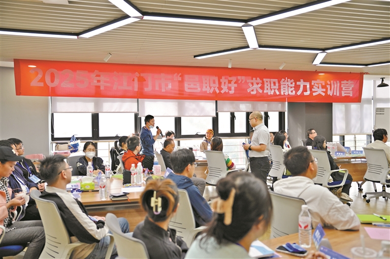 广州日报讯 (全媒体记者黄文生 通讯员罗晓盈摄影报道)11月27日,由江门市人力资源和社会保障局主办,江门市退役军人事务局、共青团江门市委员会共同协办,江门市就业服务中心承办的“2025年江门市‘邑职好’求职能力实训营”正式开营。本次实训营通过前期摸底调研,大力宣传发动,共筛选了30多名有求职需求的青年朋友参加,以“精准赋能、闭环服务”为核心理念,致力于为青年人才搭建就业成长“快车道”。