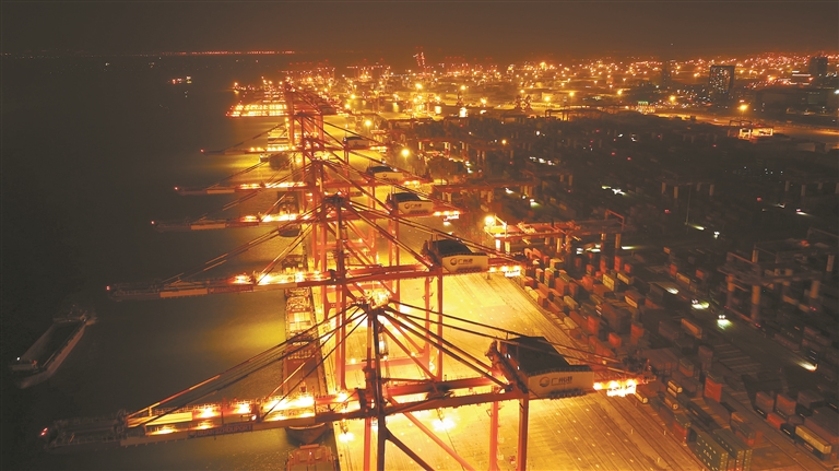 【解说】晨曦的微光中,悠长的汽笛划破大鹏湾的海雾。一艘艘巨型集装箱班轮如同钢铁巨鲸,缓缓驶入深圳东部盐田港区。