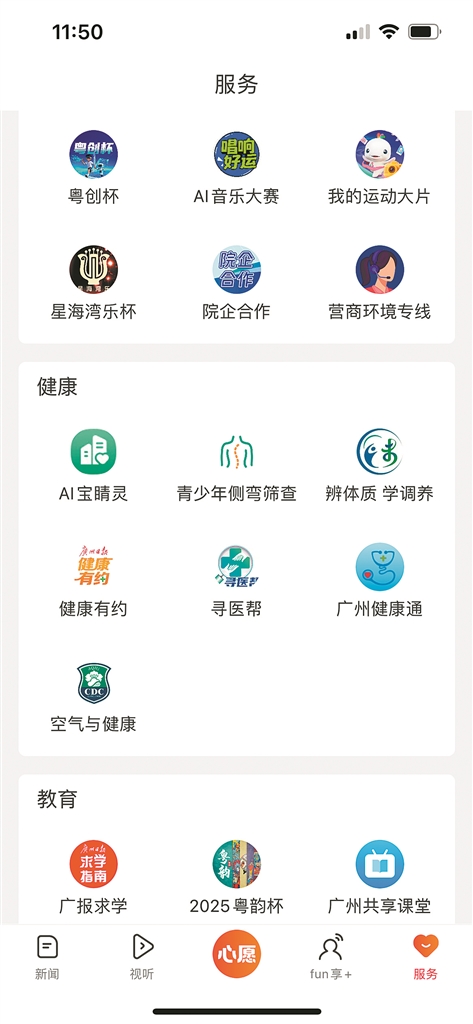 客户端聚合了健康、教育、养老、社区、研学、生活等多元化服务,是百姓民生需求的求解处。2025年招考季,广州日报从3月到7月连续推出5场专项咨询会,覆盖从高考到中考的全流程,不少家长说“这个指引太及时了”。在健康服务方面,策划推出《大湾区名医值班室》公益项目,以“主流平台+公益义诊”模式,让更多基层患者享受到名医的权威健康咨询服务。