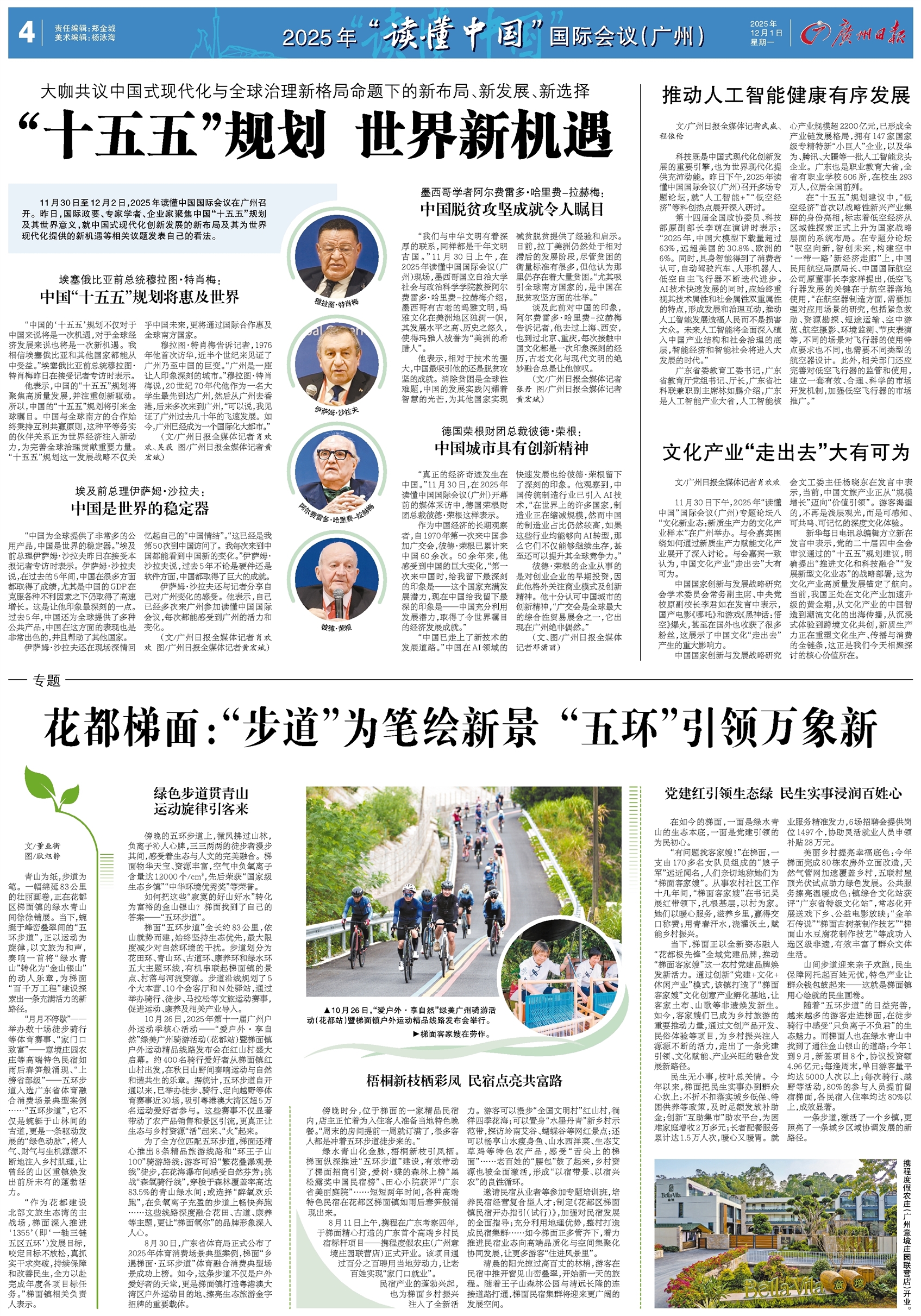 - “十五五”规划 世界新机遇 11月30日至12月2日,2025年读懂中国国际会议在广州召开。昨日,国际政要、专家学者、企业家聚焦中国“十五五”规划及其世界意义,就中国式现代化创新发展的新布局及其为世界现代化提供的新机遇等相