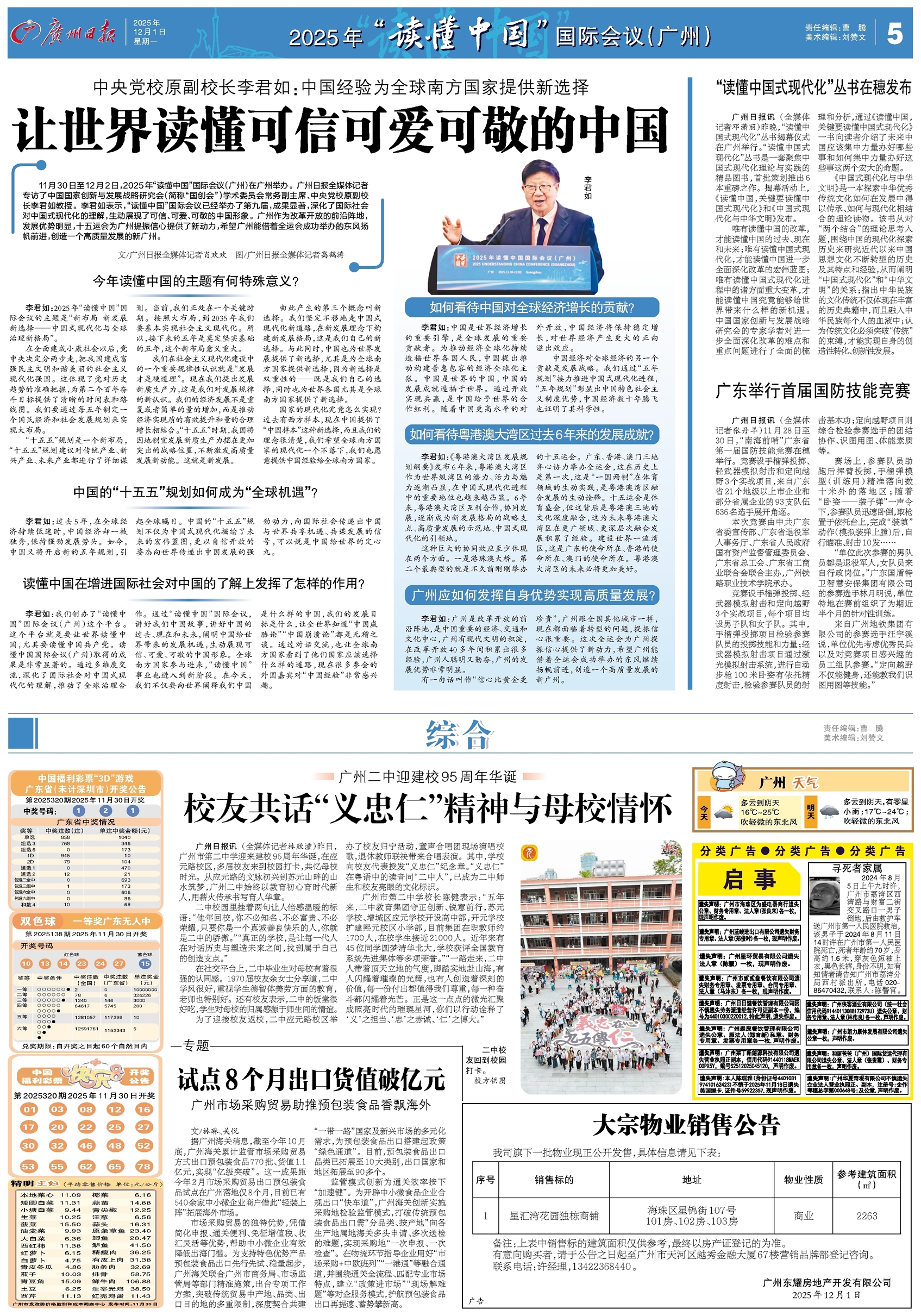 - 让世界读懂可信可爱可敬的中国 11月30日至12月2日,2025年“读懂中国”国际会议(广州)在广州举办。广州日报全媒体记者专访了中国国家创新与发展战略研究会(简称“国创会”)学术委员会常务副主席、中央党校原副校长李君如教授。