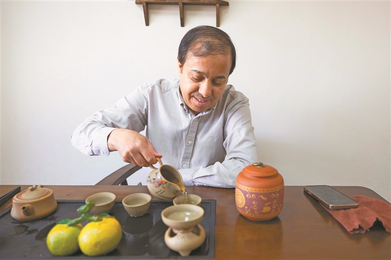 除了爱喝茶,他还特别享受广州的早茶文化。不太忙时,他会找一间茶楼,一边饮早茶,一边思考工作计划。
