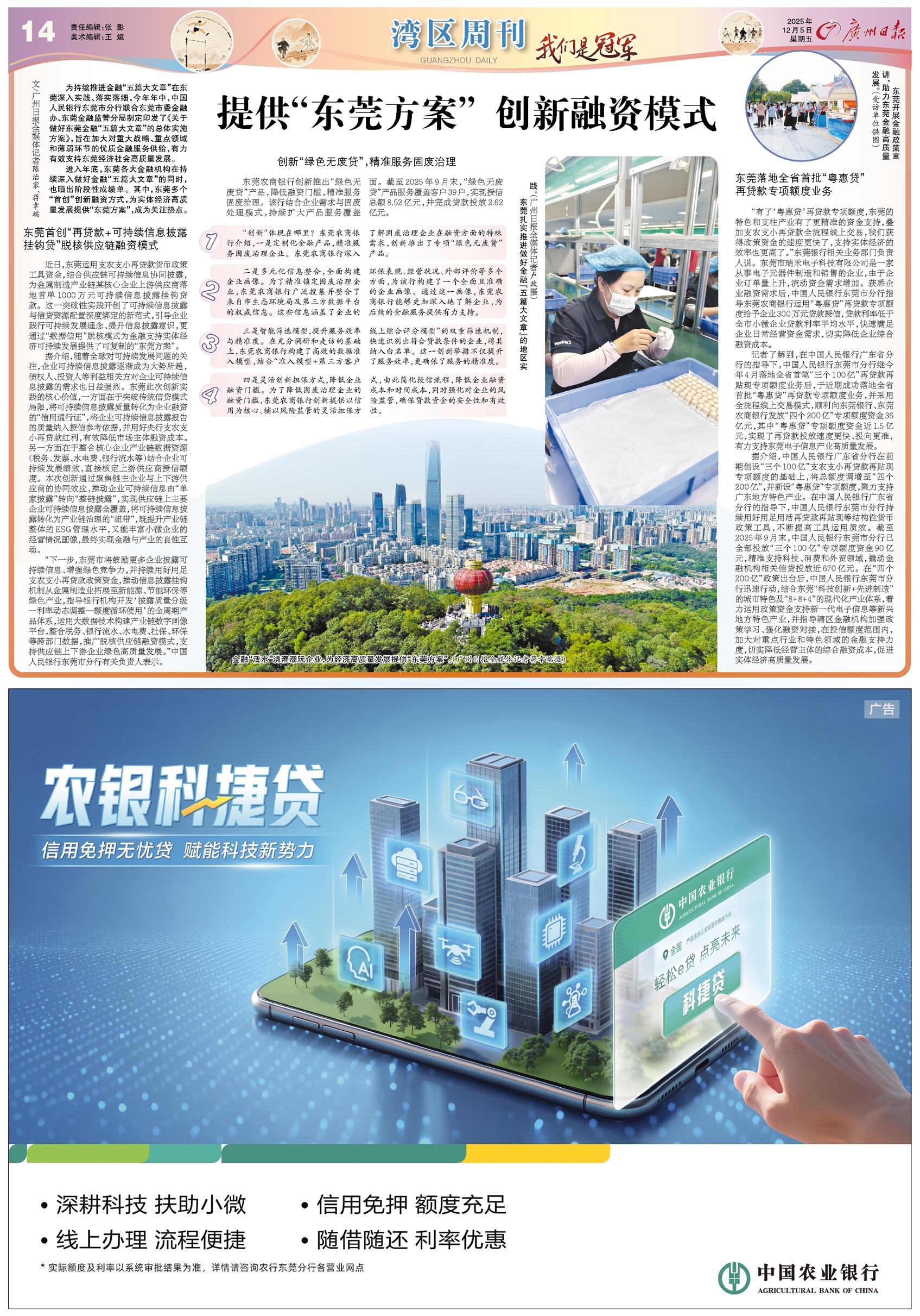 文/广州日报全媒体记者陈治家、蒋幸端 为持续推进金融“五篇大文章”在东莞深入实践、落实落细,今年年中,中国人民银行东莞市分行联合东莞市委金融办、东莞金融监管分局制定印发了《关于做好东莞金融