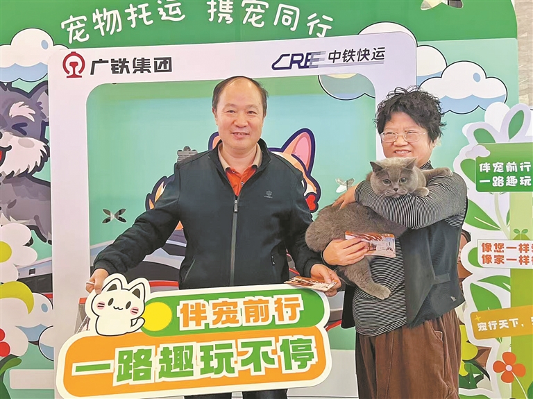 “‘发财’‘发财’,我们到广州啦!”刘女士一边轻柔呼唤,一边从托运箱中抱起胖乎乎的“毛孩子”。“这是我们第一次尝试高铁托运宠物服务。我们和‘发财’分开了五六个小时,也担心它能不能适应,现在我们放心了,对这个服务特别满意。”刘女士说。