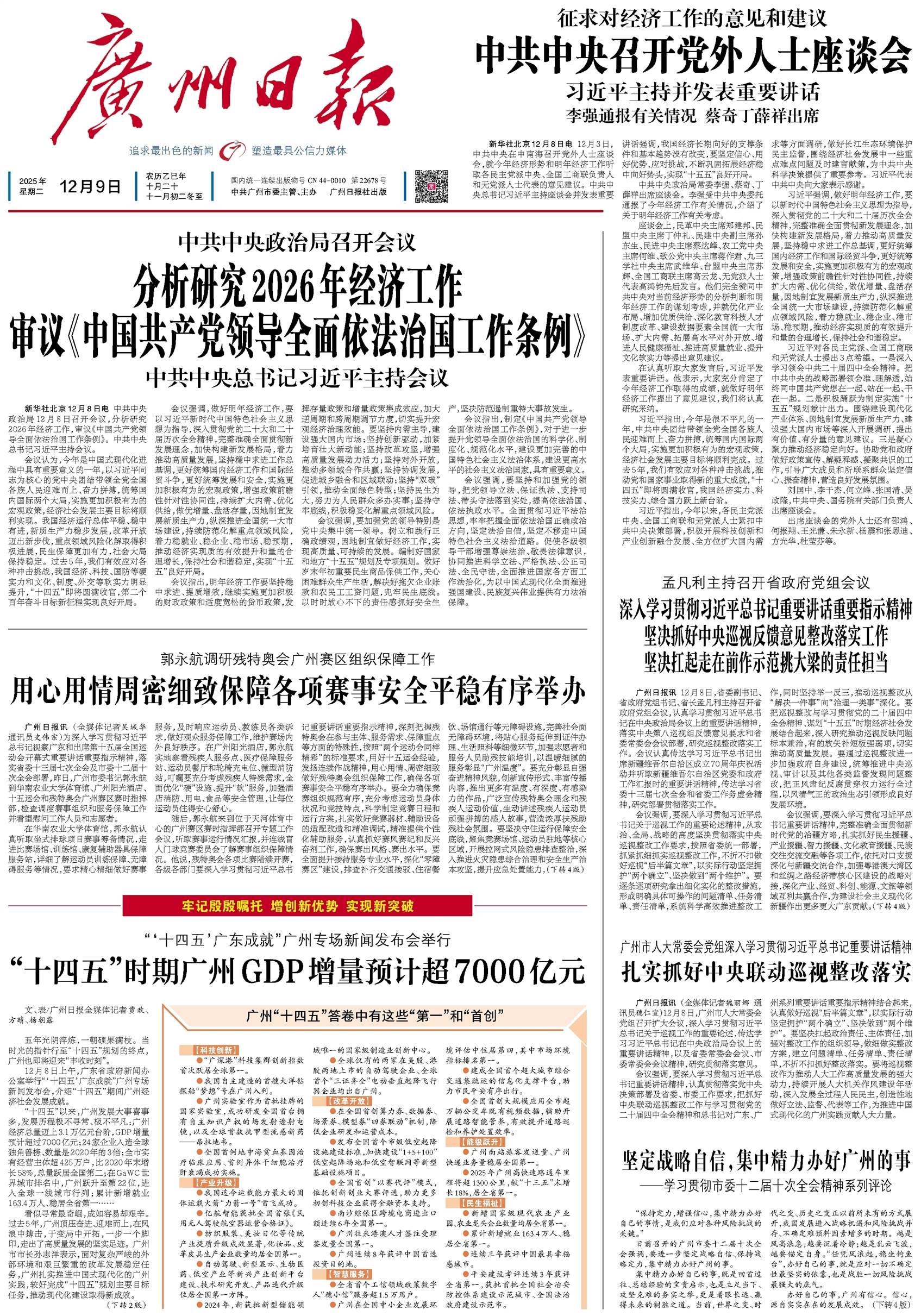 广州日报头版 A1“十四五”时期广州GDP增量预计超7000亿元 贾政、方晴、杨朝露2025-12-09 2 2025年12月09日 星期二