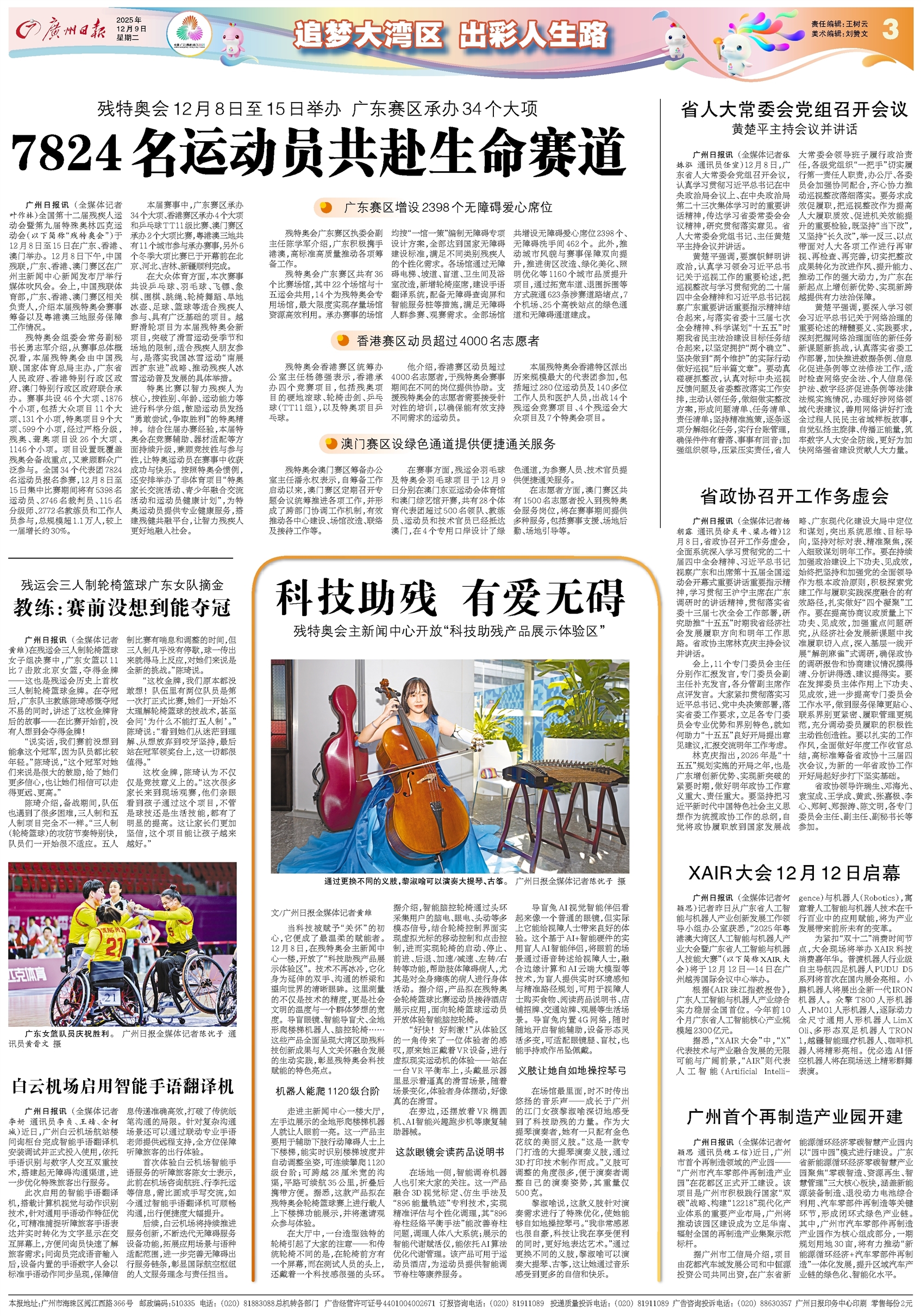 - 7824名运动员共赴生命赛道 广州日报讯 (全媒体记者叶作林)全国第十二届残疾人运动会暨第九届特殊奥林匹克运动会(以下简称“残特奥会”)于12月8日至15日在广东、香港、澳门举办。12月8日下午,中国残联,广东、香港、澳门赛区