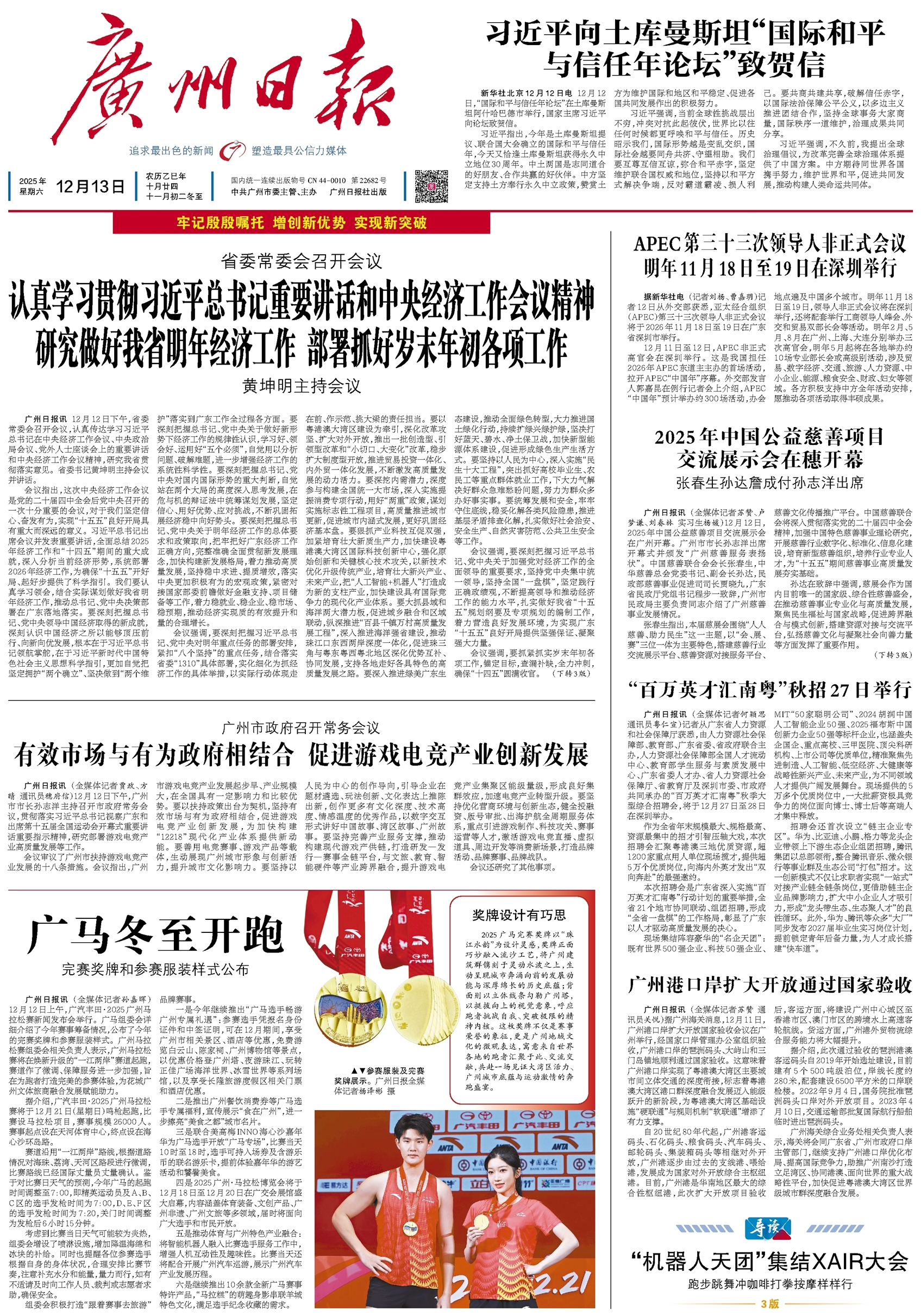 - 有效市场与有为政府相结合 促进游戏电竞产业创新发展 广州日报讯 (全媒体记者贾政、方晴 通讯员穗府信)12月12日下午,广州市市长孙志洋主持召开市政府常务会议,贯彻落实习近平总书记视察广东和出席第十五届全国运动会开幕式重要讲话重要指示精神,研究部署