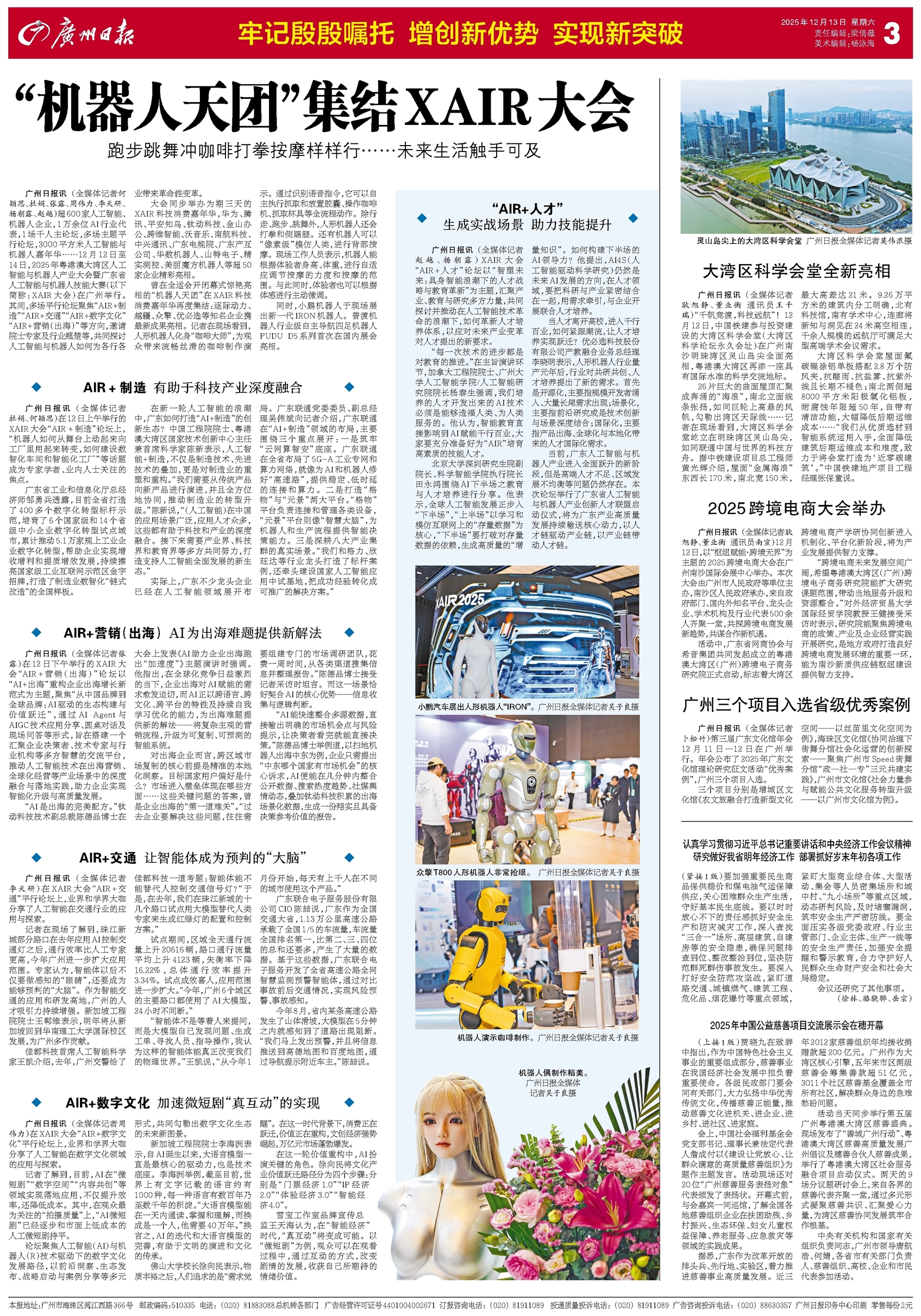- “AIR+人才” 生成实战场景 助力技能提升 广州日报讯 (全媒体记者赵越、杨朝露)XAIR大会“AIR+人才”论坛以“智塑未来:具身智能浪潮下的人才战略与教育革新”为主题,汇聚产业、教育与研究多方力量,共同探讨并推动在人工智能技术革命的浪潮