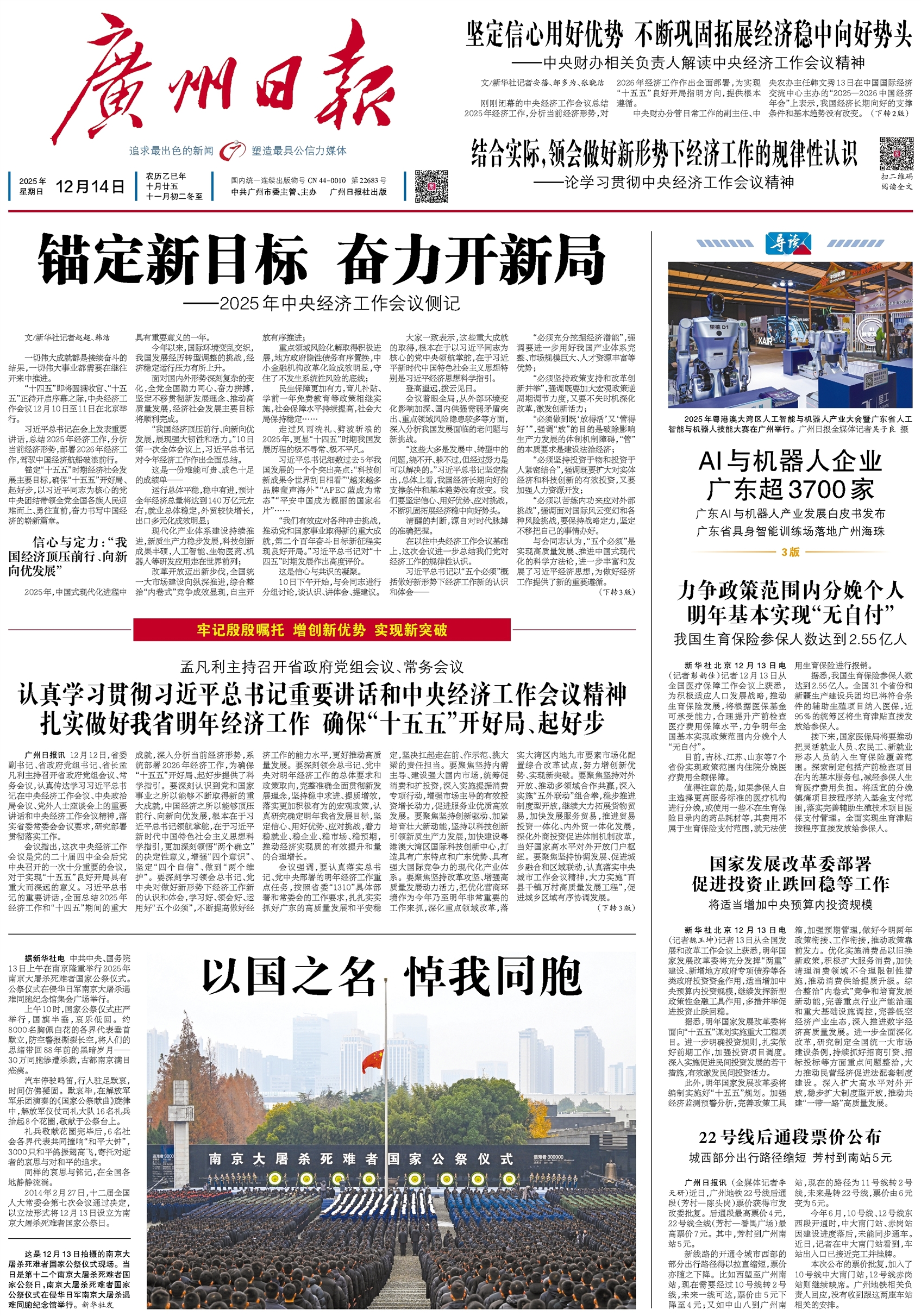 广州日报头版 A1坚定信心用好优势 不断巩固拓展经济稳中向好势头 安蓓、邹多为、张晓洁2025-12-14 2 2025年12月14日 星期日