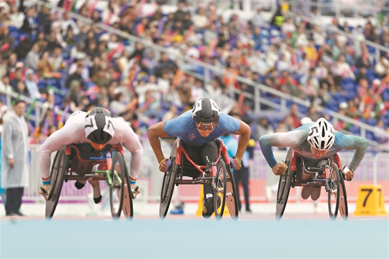 记者发现,在“残特奥会”赛场内外,这种令人暖心的细节关怀无处不在。“粤辅通”小程序24小时在线,真人手语翻译让听障运动员需求即时响应;酒店爱心服务柜里,不仅有备用辅具,还有针线包、雨伞等生活用品;志愿者穿梭在场馆各处,从引导入座到协助入场,微笑成为最动人的语言。当残疾人手工艺品展示区里的京剧绢人、景泰蓝掐丝珐琅绽放光彩,当无障碍设施成为城市永久财富,这场盛会早已超越竞技本身。