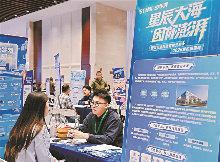 参加招聘会的王同学本科就读于澳大利亚的墨尔本大学,研究生在香港大学读书,“在招聘会逛了一圈,难得有机会和这么多企业面对面沟通,提升了沟通效率。我参加了视源股份、广汽集团等企业的面试,HR很有亲和力,会问专业问题。如果符合招聘要求,企业会在后续流程中提供便利,这趟来得值!”