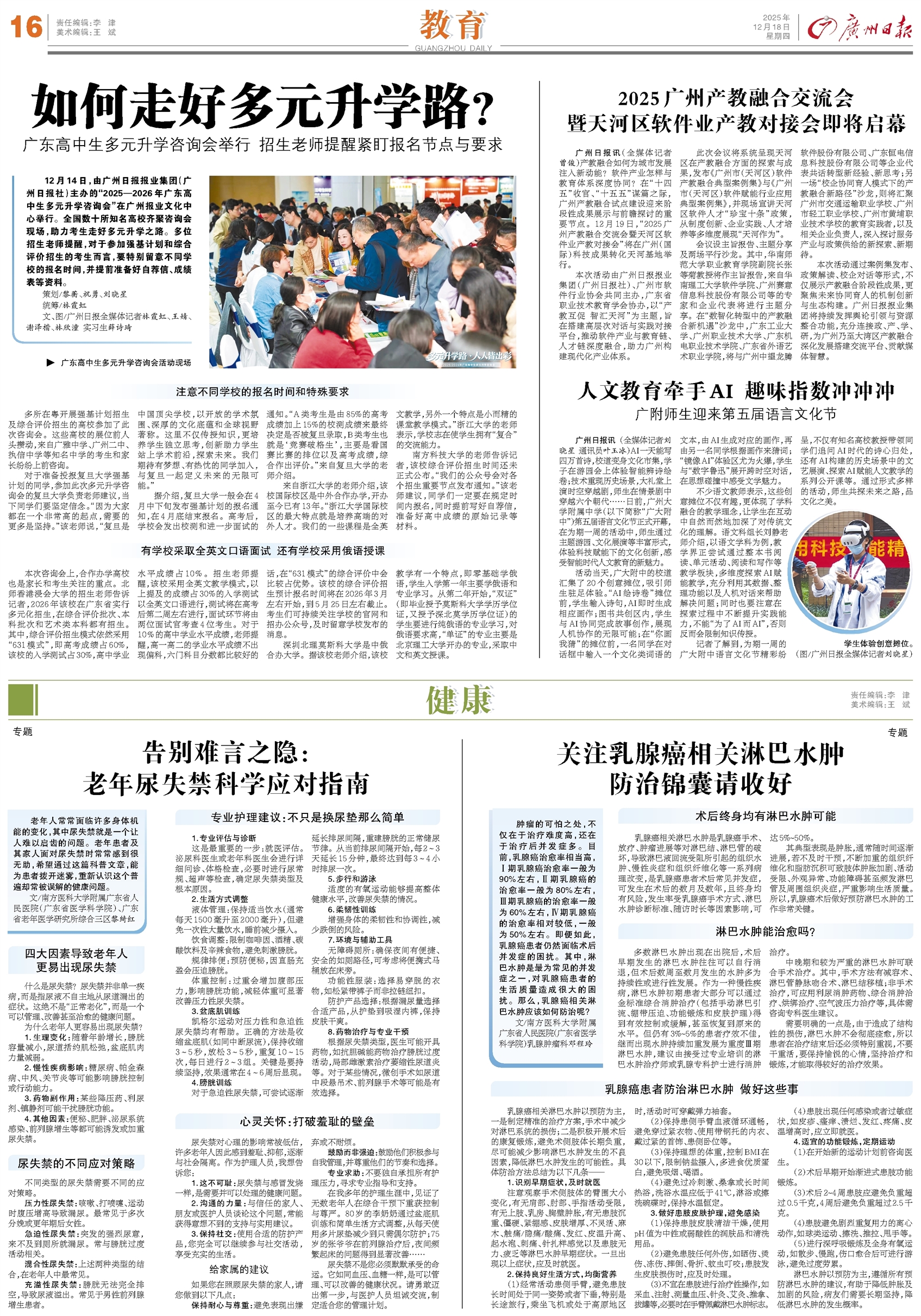- 如何走好多元升学路? 12月14日,由广州日报报业集团(广州日报社)主办的“2025—2026年广东高中生多元升学咨询会”在广州报业文化中心举行。全国数十所知名高校齐聚咨询会现场,助力考生走好多元升学之路。多位招生老师