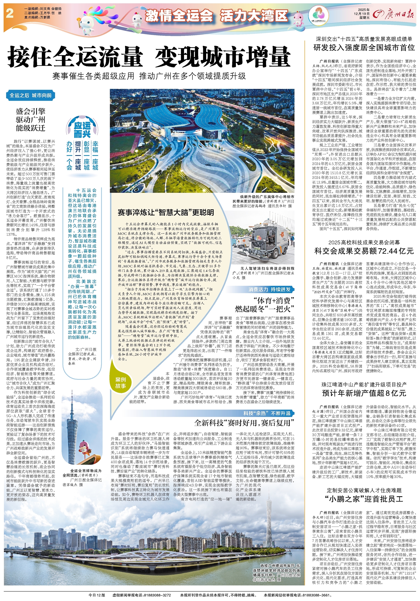- 接住全运流量 变现城市增量 十五运会和残特奥会的圣火虽已熄灭,但这场由粤港澳三地联合承办的体育盛会为广州点燃了持久的发展引擎。无论是提升城市消费活力、智慧城市建设还是科技成果转化,赛事都像一颗超级种子,催生各类超级应用,推