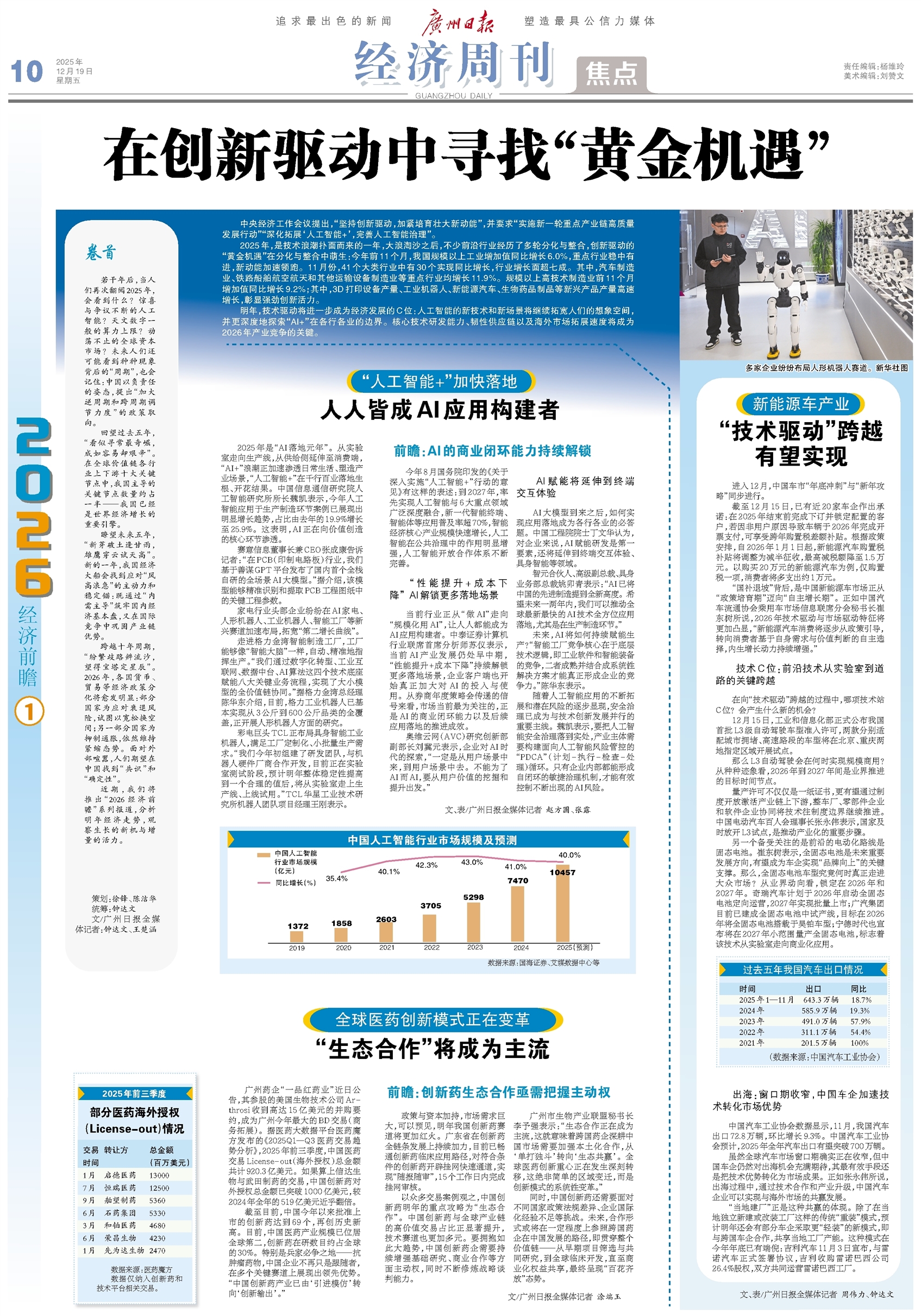 - 在创新驱动中寻找“黄金机遇” 中央经济工作会议提出,“坚持创新驱动,加紧培育壮大新动能”,并要求“实施新一轮重点产业链高质量发展行动”“深化拓展‘人工智能+’,完善人工智能治理”。 2025年,是技术浪潮扑面而来的一年