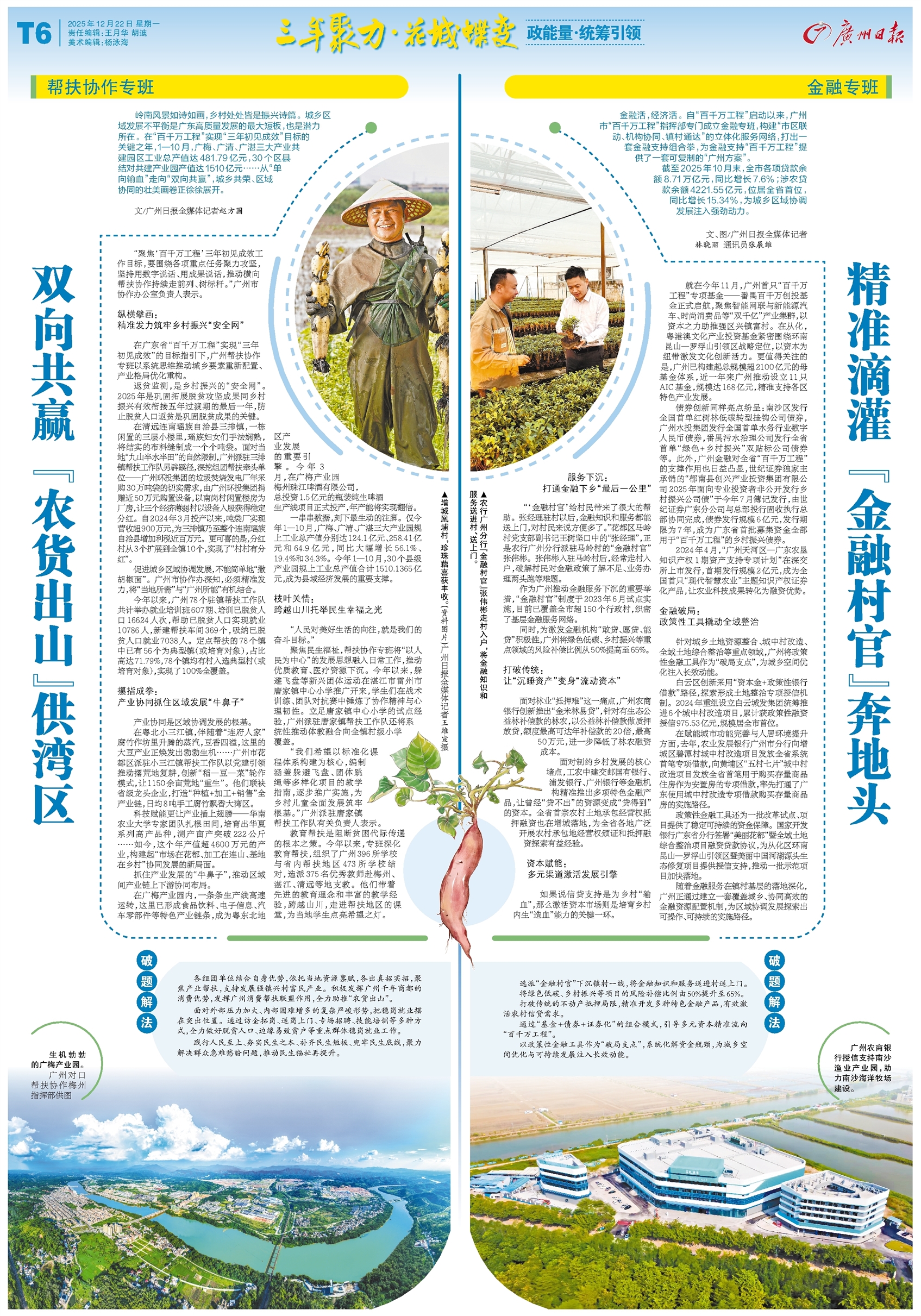 - 金融专班:精准滴灌 “金融村官”奔地头 金融活,经济活。自“百千万工程”启动以来,广州市“百千万工程”指挥部专门成立金融专班,构建“市区联动、机构协同、镇村通达”的立体化服务网络,打出一套金融支持组合拳,为金融支持“百千万工程”提供了
