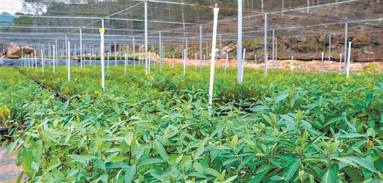 资金与基础设施建设同步发力,中央、广东省累计下达少数民族发展资金2543万元,地方债5000万元专项支持林道、标准化苗圃等建设,目前已在涡水沙田和六联建成50亩山苍子苗圃基地,培育优质种苗60万株,为产业园规模化发展奠定坚实基础。