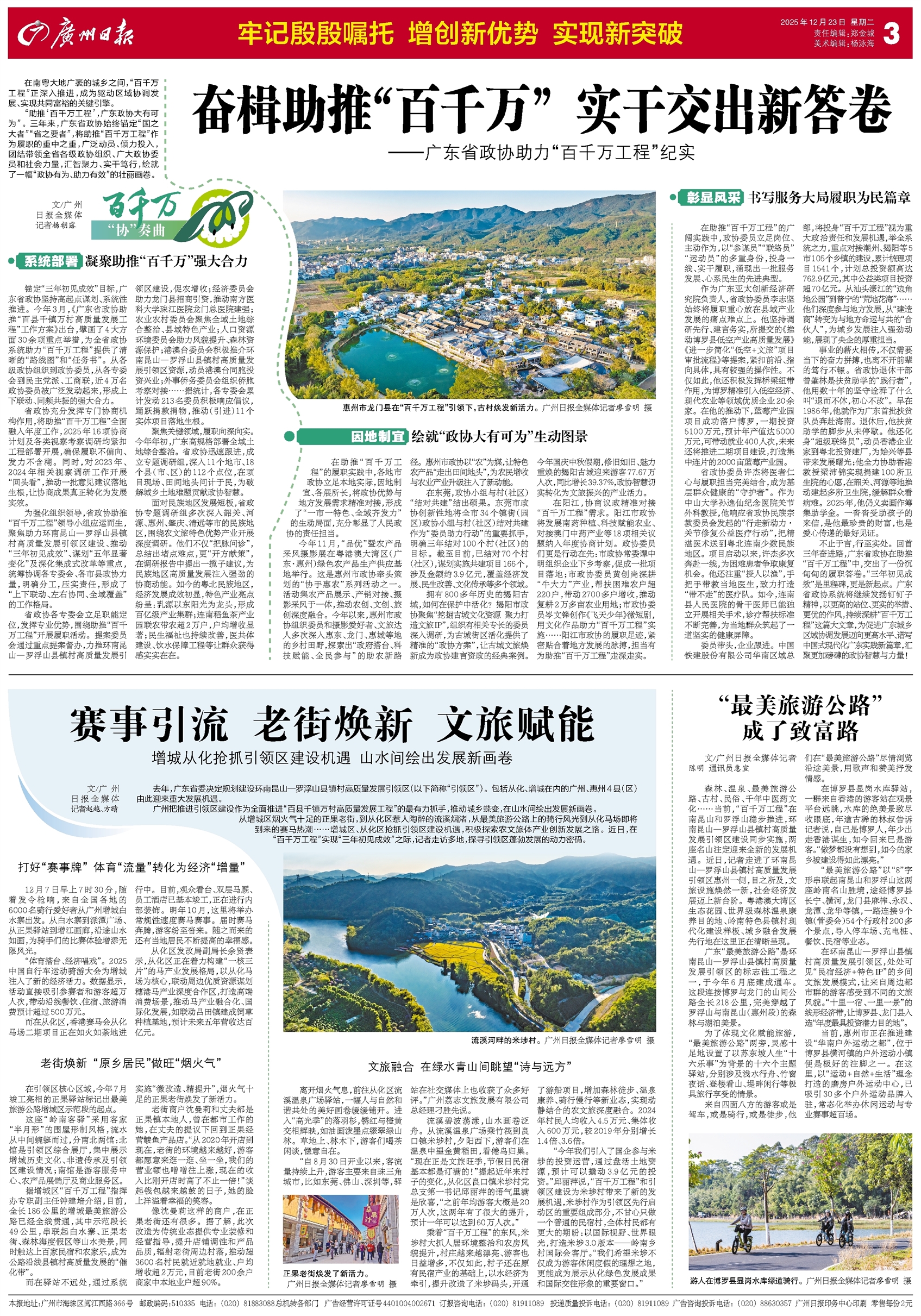 - 奋楫助推“百千万” 实干交出新答卷 百千万“协”奏曲 在南粤大地广袤的城乡之间,“百千万工程”正深入推进,成为驱动区域协调发展、实现共同富裕的关键引擎。 “助推‘百千万工程’,广东政协大有可为”。三年来,广东省政协始终锚定“