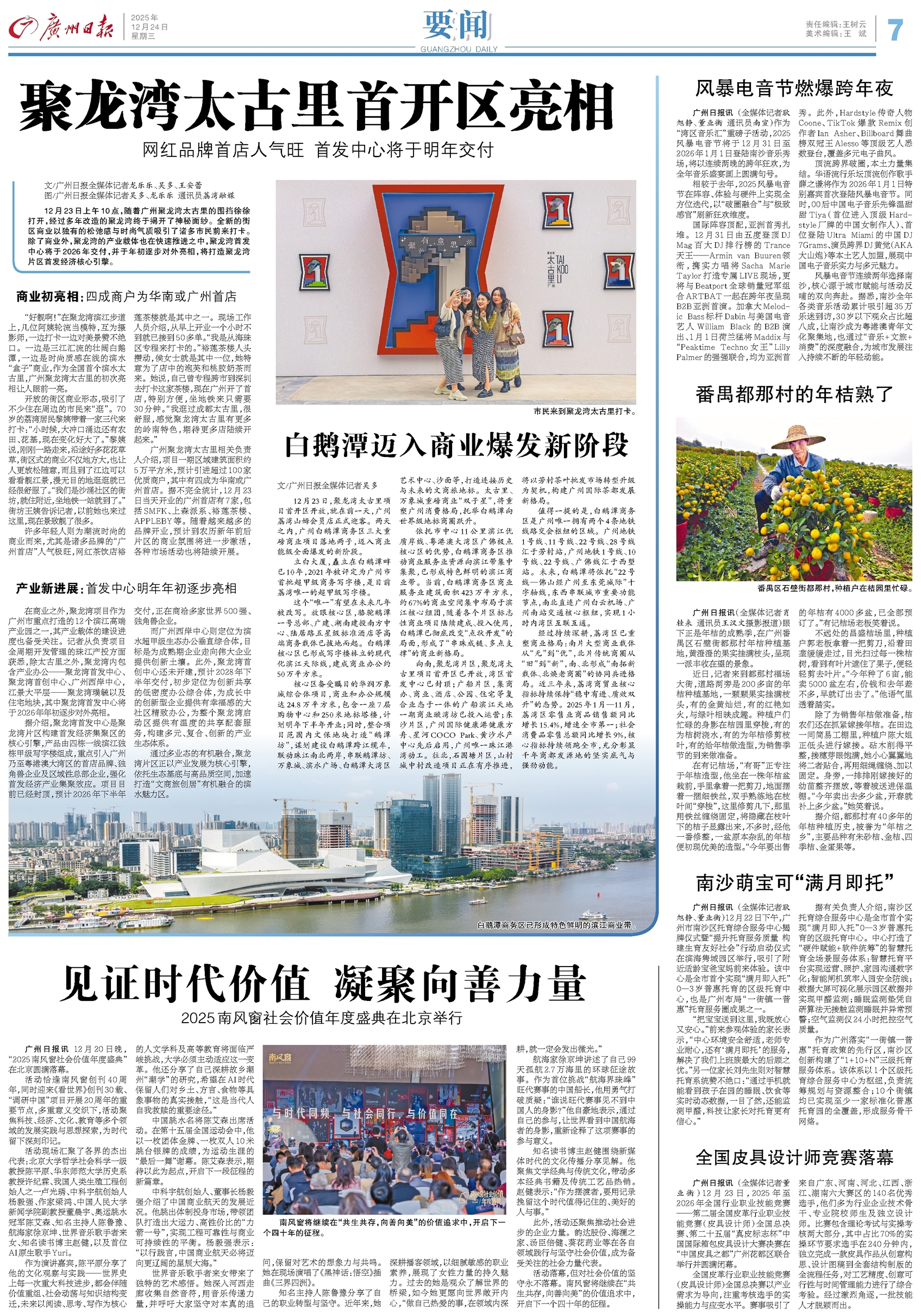 - 白鹅潭迈入商业爆发新阶段 文/广州日报全媒体记者吴多 12月23日,聚龙湾太古里项目首开区开放,就在前一天,广州荔湾山姆会员店正式迎客。两天之内,广州白鹅潭商务区三大重磅商业项目落地两子,迈入商业能级全面爆发的新阶段。