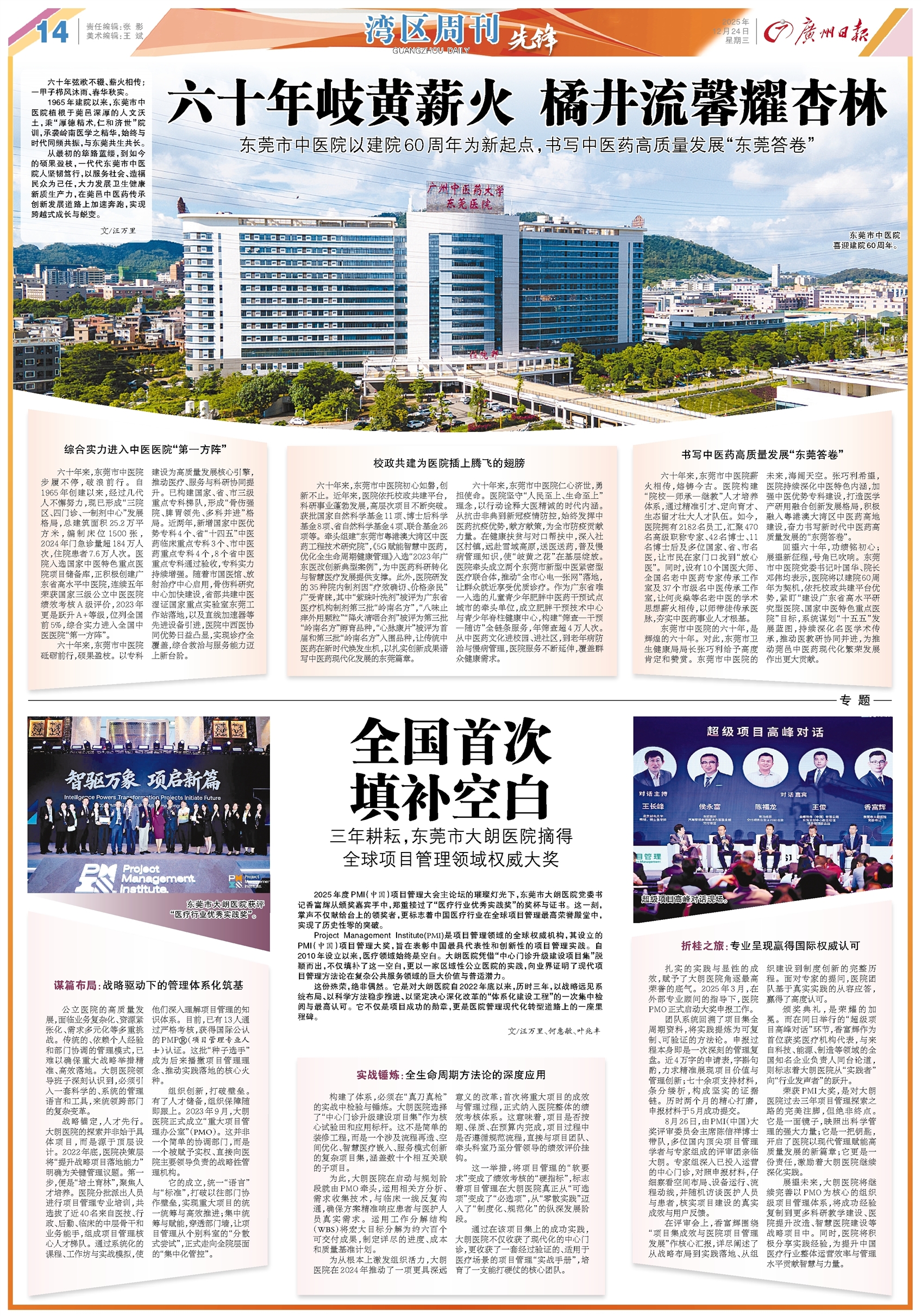 - 全国首次填补空白 2025年度PMI(中国)项目管理大会主论坛的璀璨灯光下,东莞市大朗医院党委书记香富辉从颁奖嘉宾手中,郑重接过了“医疗行业优秀实践奖”的奖杯与证书。这一刻,掌声不仅献给台上的领奖者,更标志着中国医