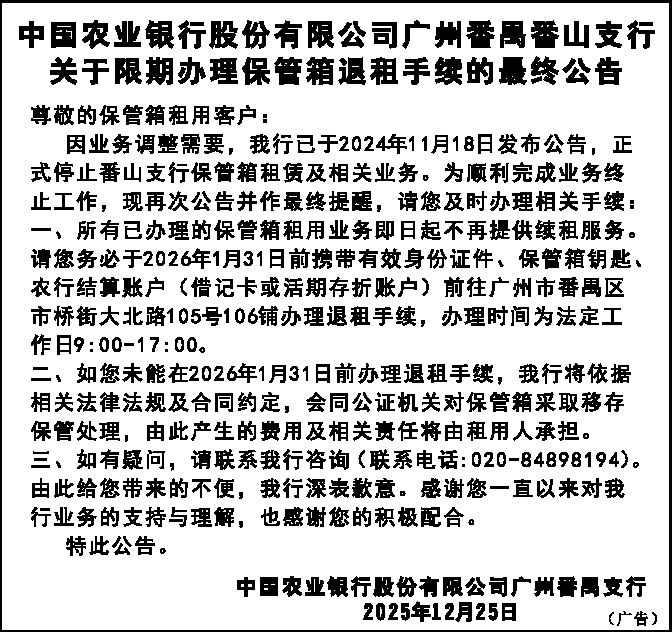 中国农业银行股份有限公司广州番禺支行