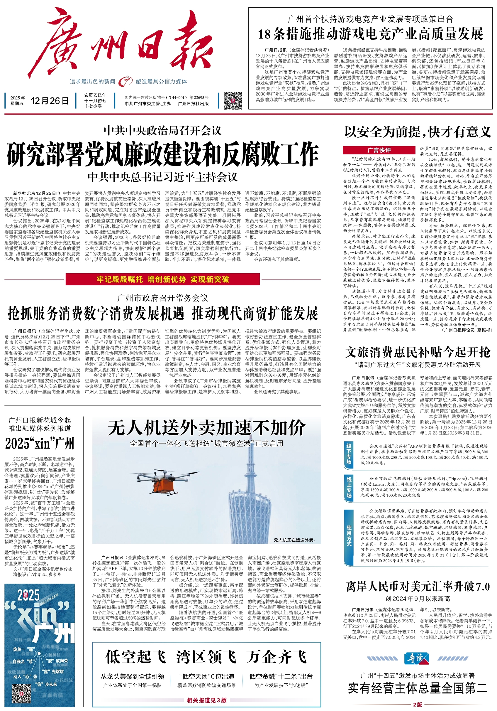 - 2025“xin”广州 2025年,广州推动高质量发展步履不停,高光时刻不断。老城逆生长,城乡蝶变;融通大湾区,展翼全球。盛会连连,流量泼天;向新向智,产业突围……岁末年终再回首,广州日报新花城特别推出《2025“xin