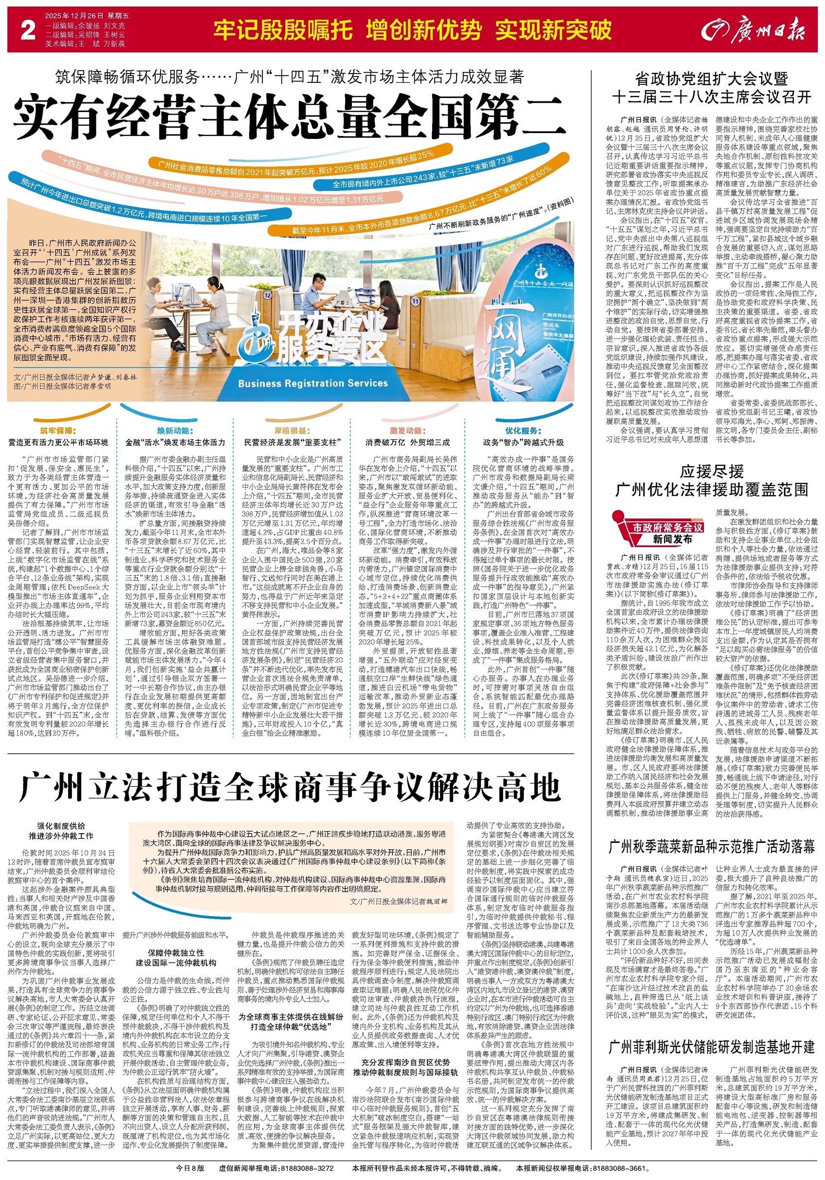 - 实有经营主体总量全国第二 昨日,广州市人民政府新闻办公室召开“‘十四五’广州成就”系列发布会——广州“十四五”激发市场主体活力新闻发布会。会上披露的多项亮眼数据展现出广州发展新图景:实有经营主体总量跃居全国第二,广州—深圳