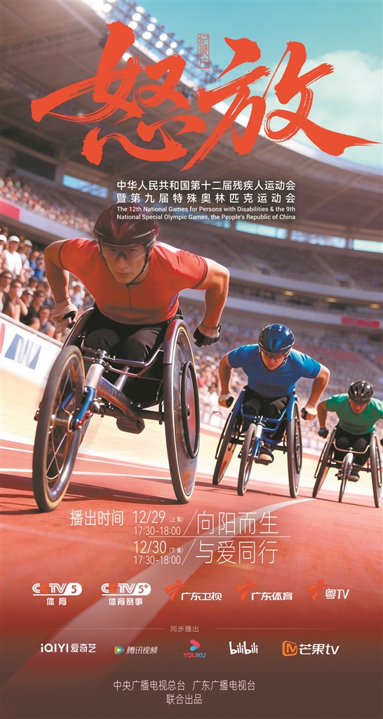 广州日报讯 粤港澳三地首次联合承办的中华人民共和国第十二届残疾人运动会暨第九届特殊奥林匹克运动会虽已落幕,但赛场内外的热血与温情依然令人难忘。由中央广播电视总台与广东广播电视台联合出品的残特奥会纪录片《怒放》,将于12月29日、30日17:30在央视体育频道、广东体育频道、粤TV上线,爱奇艺、腾讯视频、优酷视频、芒果TV、B站多平台同步播出。让我们一起感受生命最本真的怒放,传递这份直抵人心的力量。