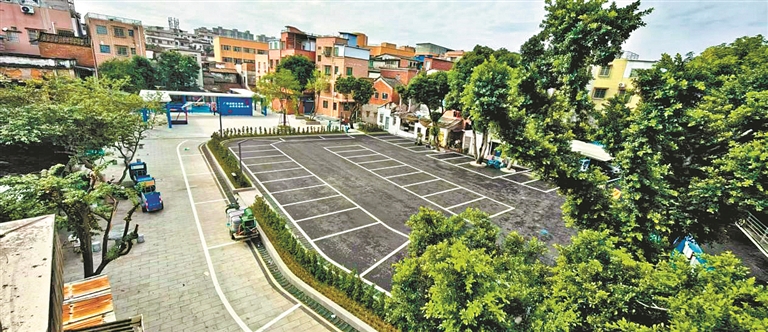 改造后的秀水广场,功能完备,设计合理,充分满足了居民的多元化需求。广场分为两大核心功能区:一是休闲娱乐区,配备了健身路径设施和舒适的休憩娱乐空间,二是停车场区,提供40余个停车位,有效解决了周边居民停车难、车辆乱停乱放的问题。此外,广场还融入“水秀花香”主题元素。作为大型鲜花集散市场的岭南花卉市场坐落于秀水社区,秀水公园以花为媒,打造了大型文化墙及一系列景观小品。