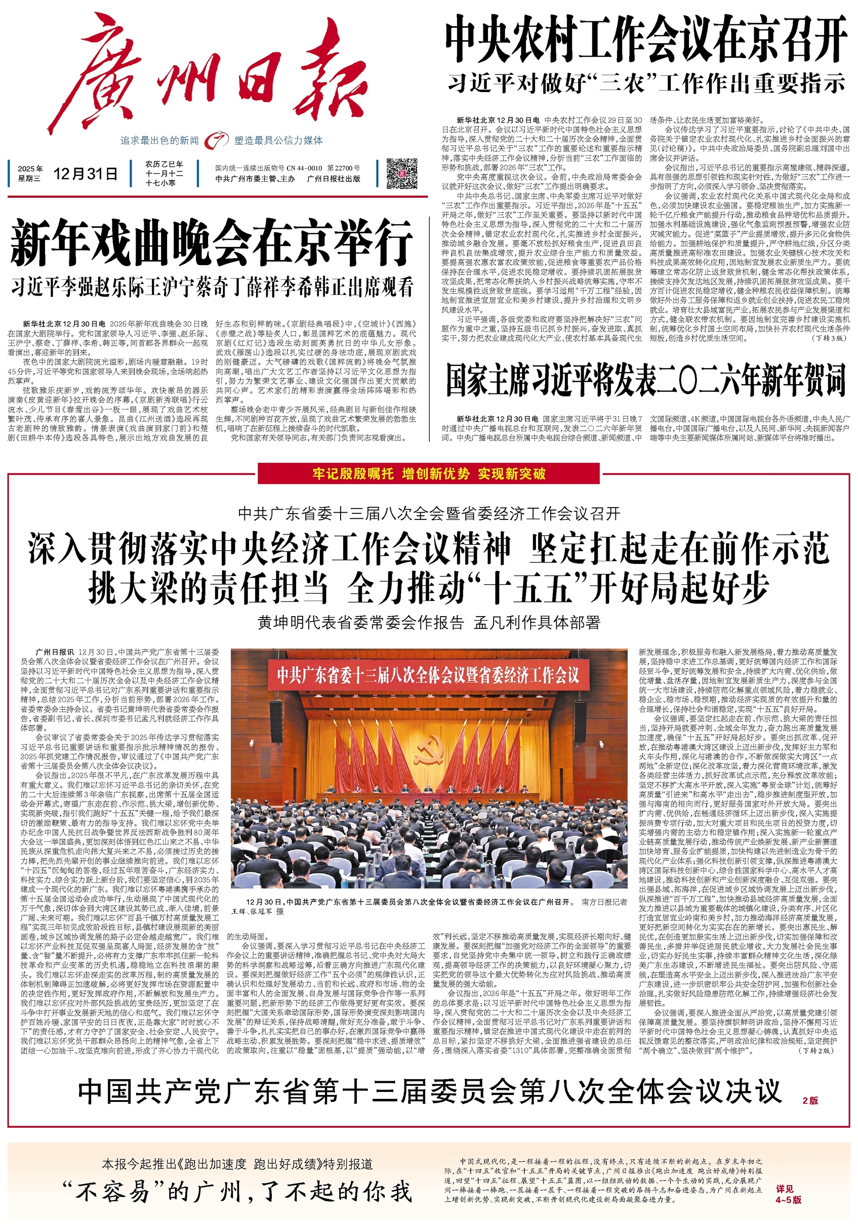 新华社北京12月30日电 中央农村工作会议29日至30日在北京召开。会议以习近平新时代中国特色社会主义思想为指导,深入贯彻党的二十大和二十届历次全会精神,全面贯彻习近平总书记关于“三农”工作的重要论述和重要指示精神,落实中央经济工作会议精神,分析当前“三农”工作面临的形势和挑战,部署2026年“三农”工作。