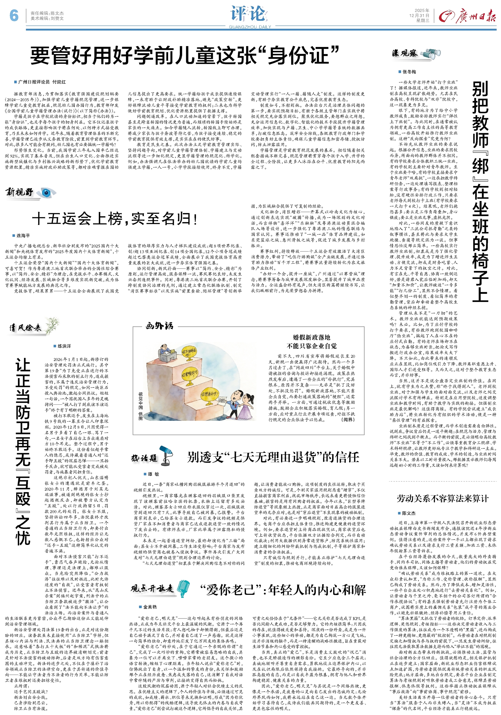 前不久,四川省宣布将婚假延长至20天,新规一出便赢得广泛期待。然而一个多月过去了,在“问政四川”平台上,关于婚假申请被拒的咨询与投诉却接连涌现。政策在热烈发布后,遭遇了一些企业的“冷执行”,究其根本,原因并不复杂——无非是“批了没好处,不批没惩罚”。婚假新政落地,不能只靠企业自觉,而要打通政策落地的“梗阻”,还需两手并举。一方面,可通过税收优惠等激励措施,鼓励企业积极落实婚假、育儿假;另一方面,应对重点行业开展专项巡查,对拒不执行规定的企业依法予以惩戒。 (闻界)