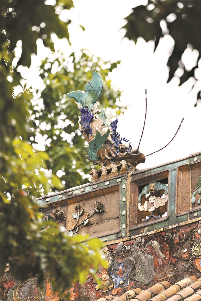 屋脊上的鳌鱼不仅有着独占鳌头的吉祥寓意,也体现了岭南的亲水、敬水文化。